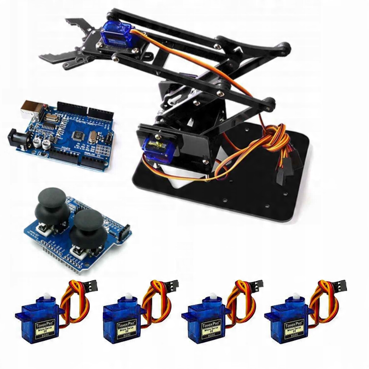Полный комплект, необходимый для создания собственной роботизированной руки. Возможность управлять манипулятором вручную с помощью двух ручек-джойстиков или запрограммировать микроконтроллер так, чтобы манипулятор перемещался самостоятельно в соответствии с определенными запрограммированными настройками.