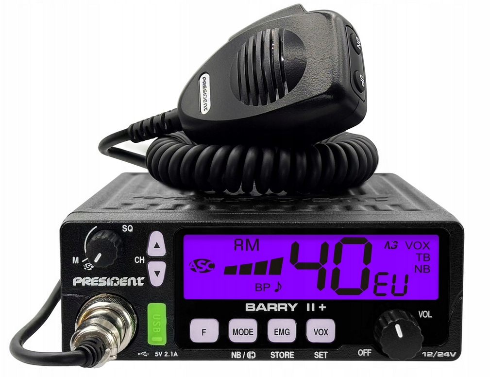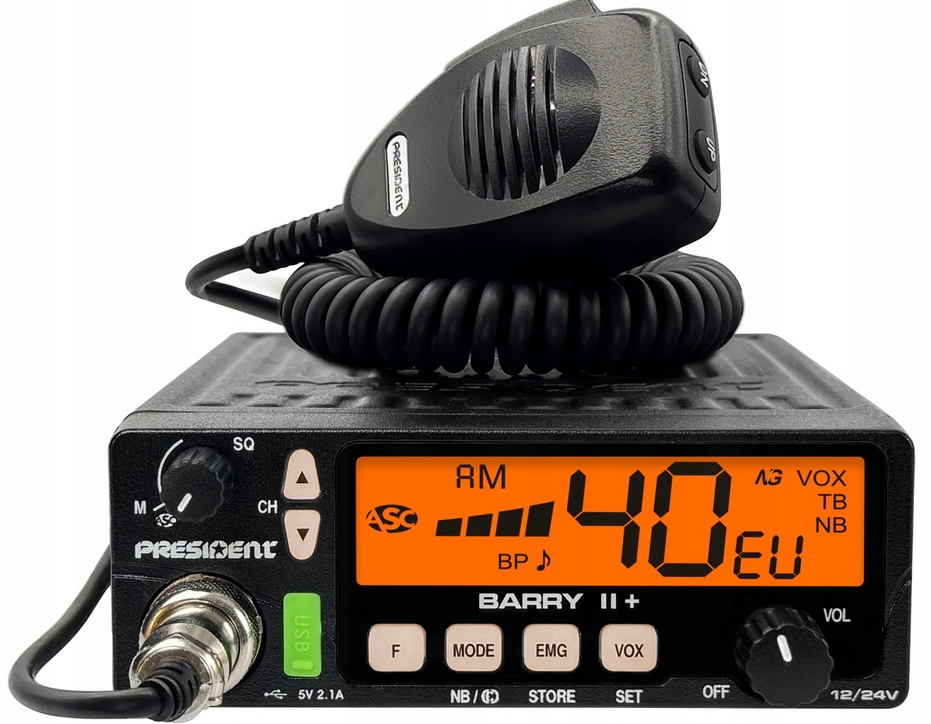 CB RADIO PRESIDENT BARRY II PLUS 12V/24V USB VOX ASC