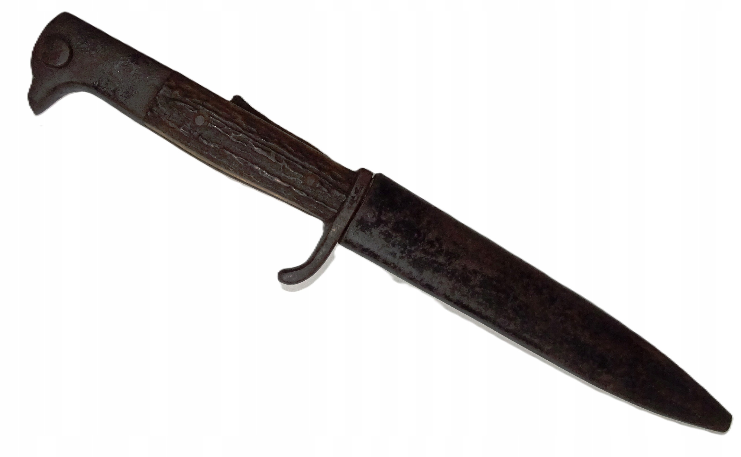 Окопный нож в сборе, боевой нож, грабендольх, оригинал, в натуральном состоянии и с патиной, натуральная кожа.