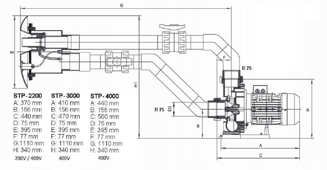 В противотоке использовался насос СТП, с трехфазным двигателем 400В мощностью 2,2 кВт.