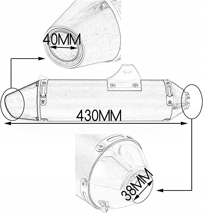 - Диаметр выпускного отверстия: 38 мм