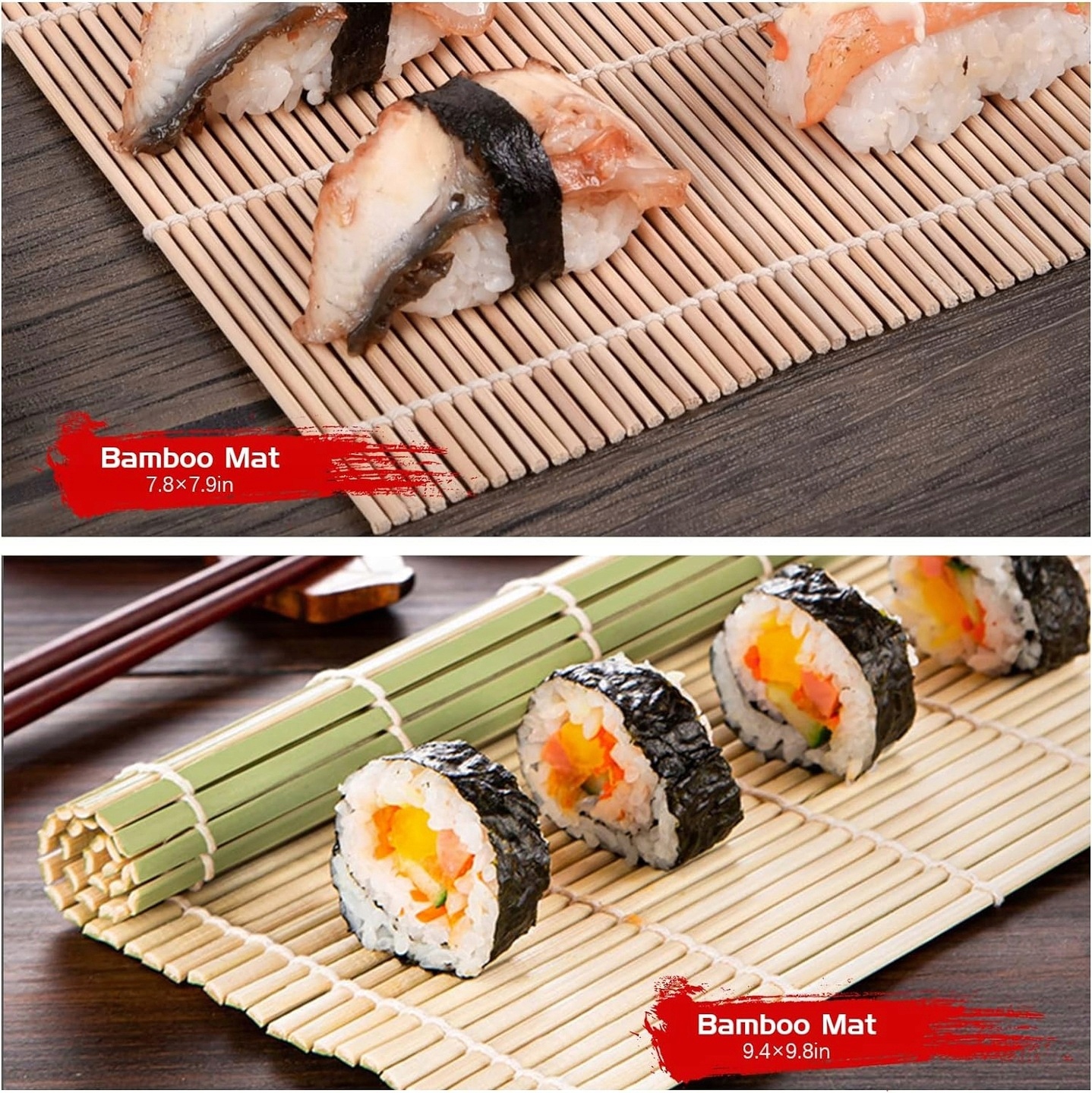✨ Высококачественные материалы: бамбуковые коврики суши являются естественными и экологически чистыми. Весь комплект изготовлен из материалов высочайшего качества, разрешенных для контакта с едой, и может быть промыт в посудомоечной машине. Это не только проще в использовании, но и универсальный набор для подготовки различных типов суши, от традиционных роликов до творческих композиций.