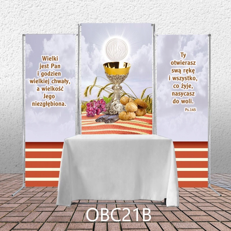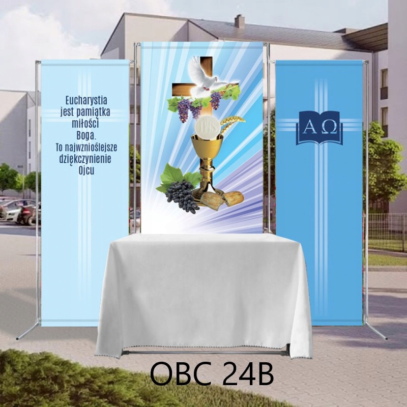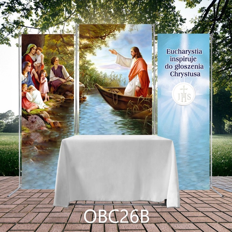Графика на баннерах была специально разработана, чтобы соответствовать литургическому содержанию празднования святого тела и празднования крови. Они поддерживают долговечность и глубину цветов в течение многих лет и могут использоваться много раз.