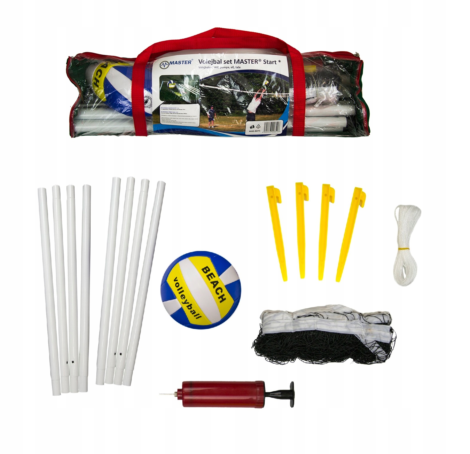 Волейбольный набор МАСТЕР * Стартt включает в себя волейбольную сетку + 2 стойки, мяч и насос, а также элементы крепления, все необходимые элементы для игры в волейбол за пазухой. природы. В комплект входит сумка для удобной транспортировки и хранения.