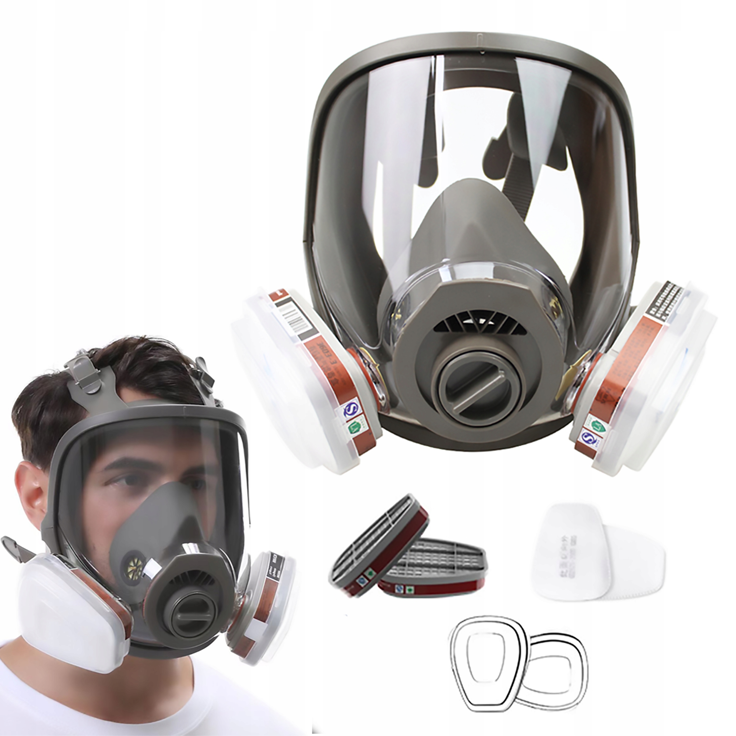 ✔️✔️ 【Полная маска: защита без забот】Маска противогазовая (полная) создана для самых требовательных пользователей. Полная комплектация, включает в себя респиратор, 12 хлопковых фильтров, 2 картриджа, 2 крышки картриджей, работать без этого незаменимого инструмента невозможно.