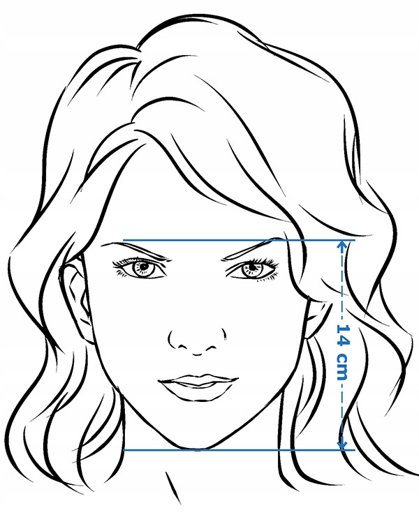 Закройте рот и измерьте расстояние между нижним краем подбородка и линией бровей.