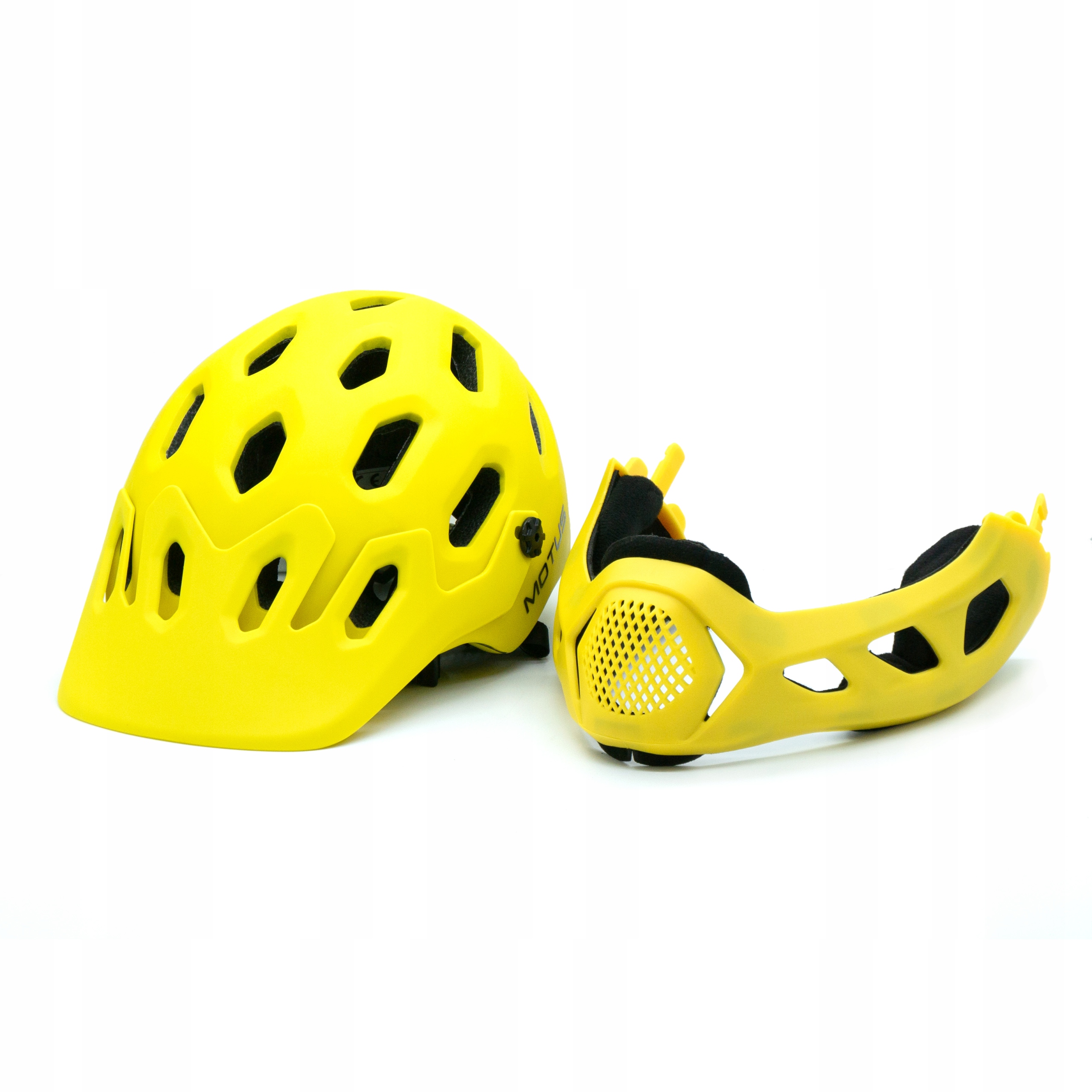 Велосипедный шлем Motus имеет 21 вентиляционное отверстие, обеспечивающее свободный поток воздуха и препятствующее чрезмерному потоотделению. Дополнительная защита подбородка также защищает челюсть от травм. Механизм открывания чехла позволяет создавать два разных шлема: для MTB, BMX, скутера, горного велосипеда и мотоцикла для бездорожья.