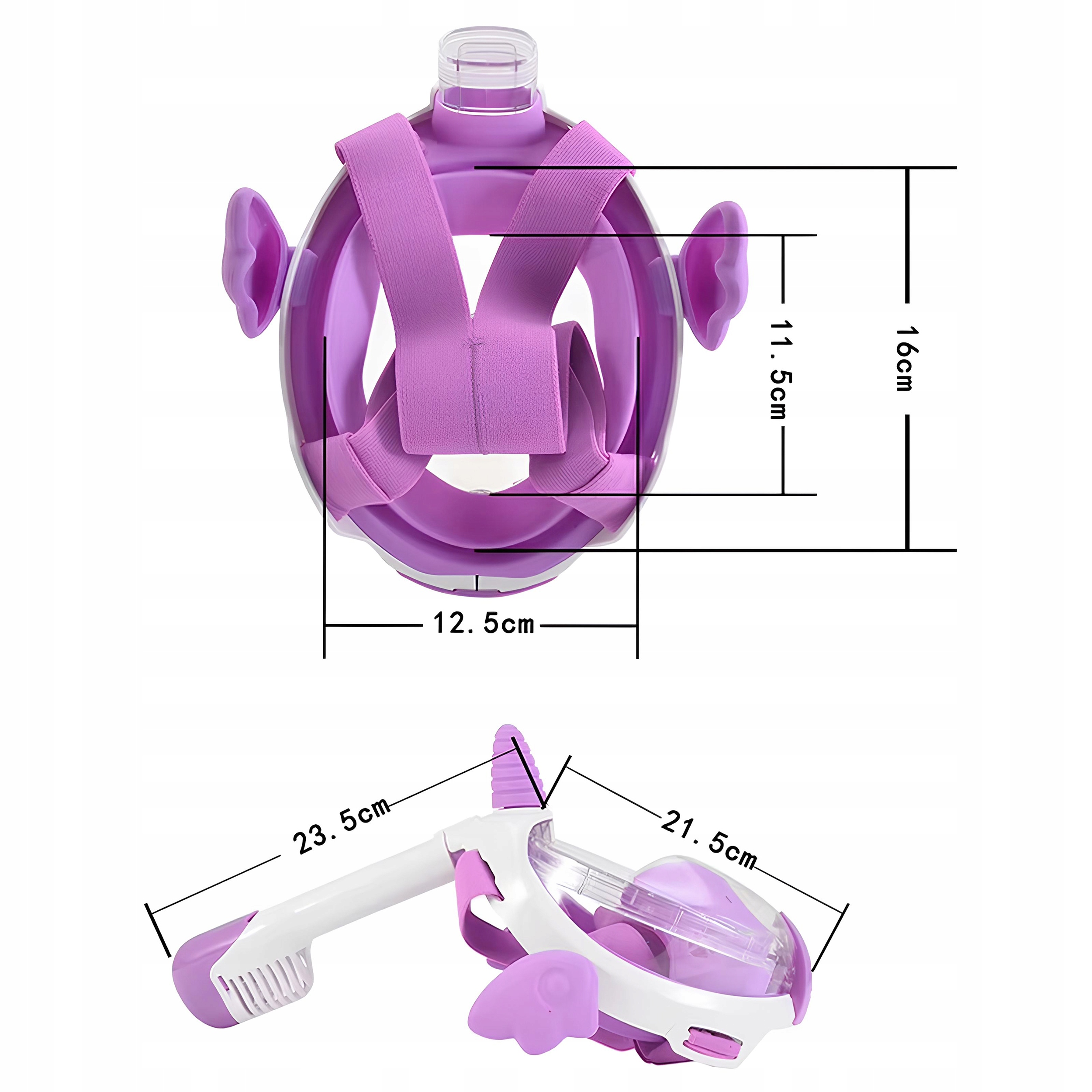 Фиолетовые цвета с мотивом единорога -это хит среди самых молодых пользователей. Маска не только работает отлично, но и выглядит особенной! Благодаря этому ребенок охотно надевает его и чувствует себя исключительно из первого контакта с водой.