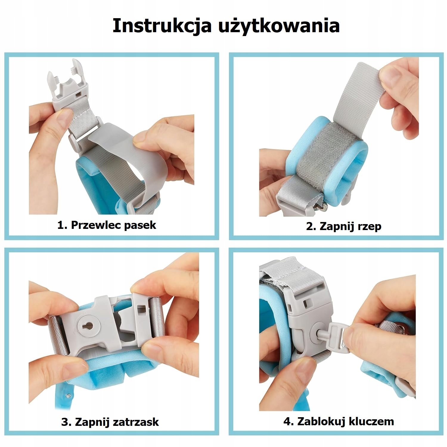 полоса оснащена застежкой для ключей, что гарантирует безопасность вашего ребенка. Только родитель может разблокировать полосу, которая предотвращает, как ребенок предотвращает. Кабель обеспечивает свободное движение ребенка в радиусе 150 см, одновременно обеспечивая управление опекуном. Рекомендуется для детей с 4 года. Смотрите ребенка в многолюдных или плохо освещенных местах. На игровых площадках, на игровых площадках, улицах, аэропортах или в метро. Это также может быть прикреплено к рюкзаку или тележке