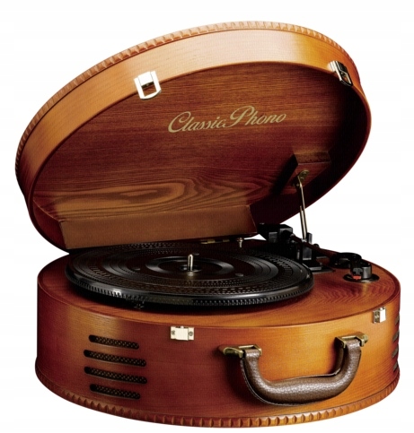 Портативный ретро-проигрыватель с ременным приводом, спрятанный в красивом чемодане. Оснащен двумя встроенными динамиками, керамическим стереофоническим картриджем со стилусом и тремя уровнями скорости. Его оригинальный внешний вид порадует каждого, а звуки позволят увлечься нотами и насладиться минутой удовольствия, слушая любимые песни.