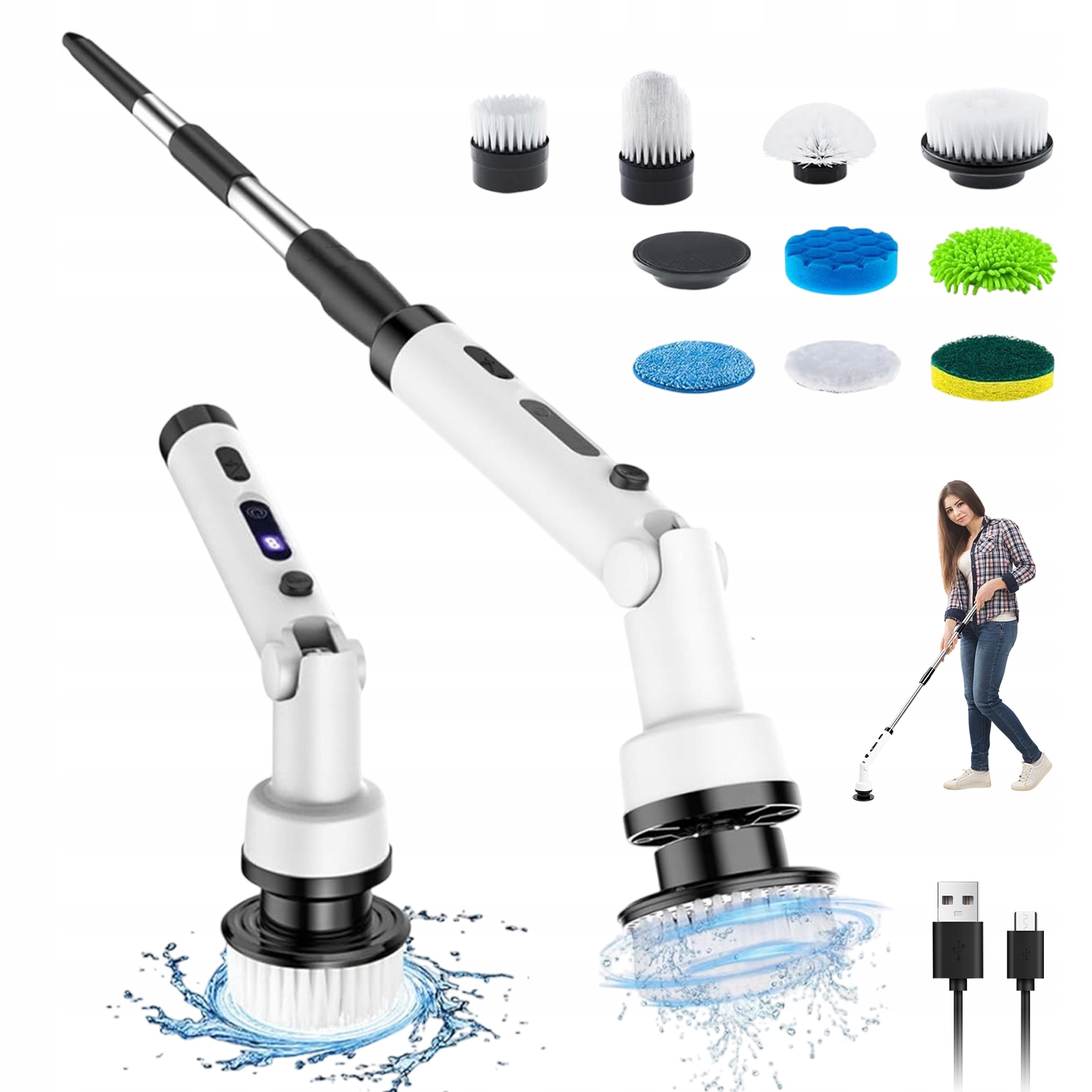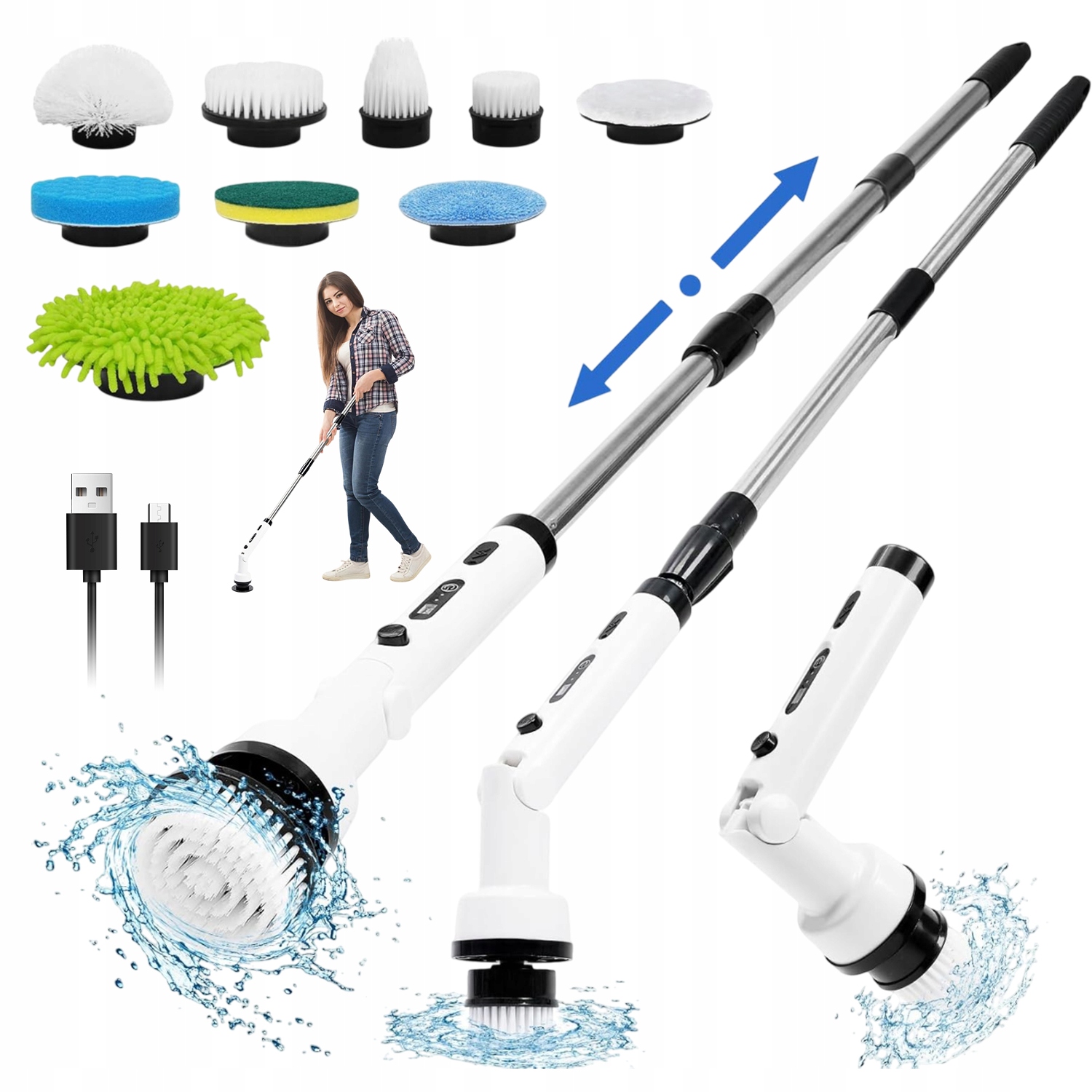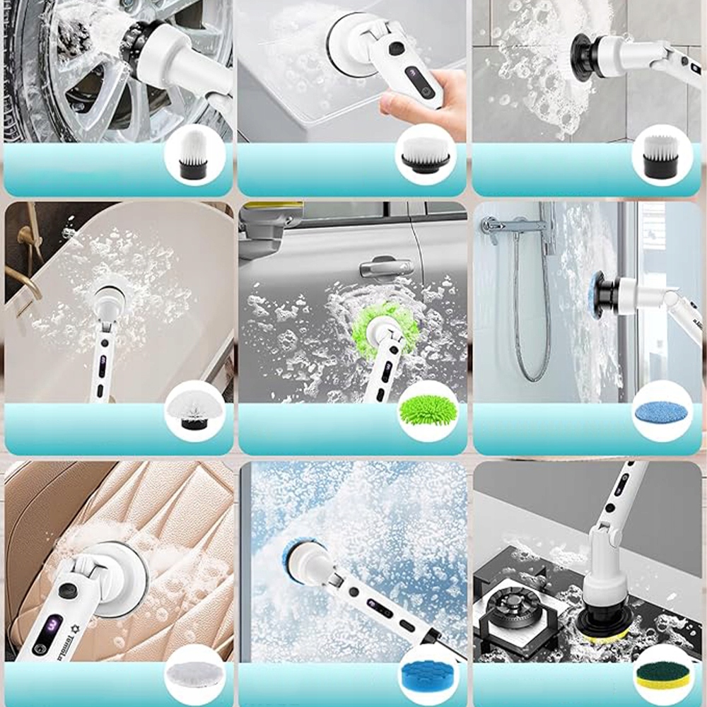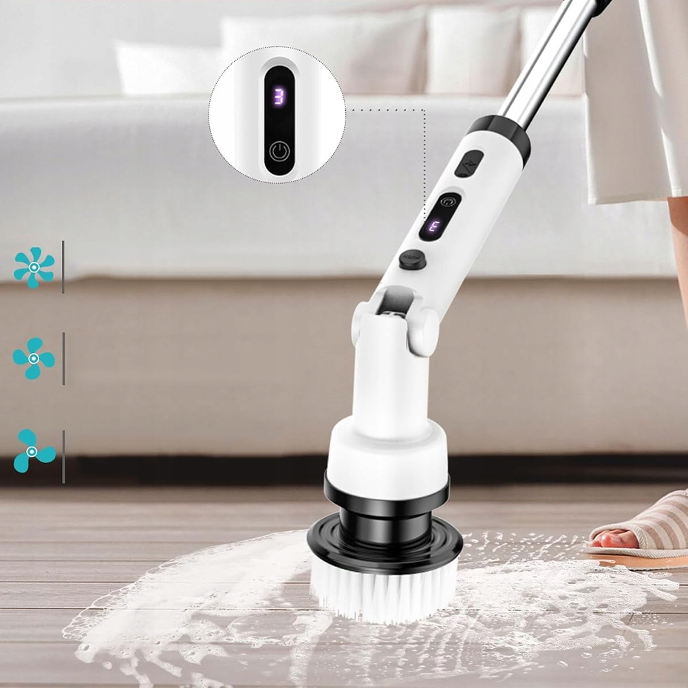 Электрическая чистящая щетка с 9 заменяемыми электрическими щетками, 3 скоростями, регулируемыми и съемными, длинная, длинная ручка в ванную, кухню, автомобиль