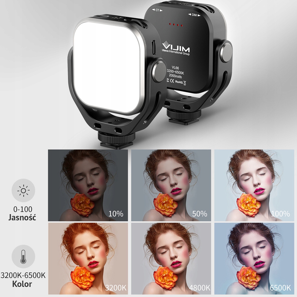 Встроенный аккумулятор емкостью до 2000 мАч позволяет использовать лампу до 120 минутпри максимальной яркости. Заряжается аккумулятор с помощью кабеля USB Type-C, входящего в комплект. VIJIM VL66 также позволяет использовать устройство во время зарядки.
