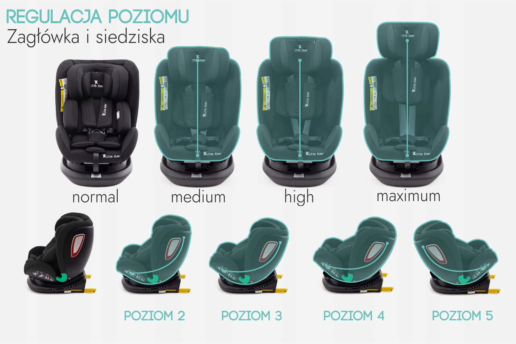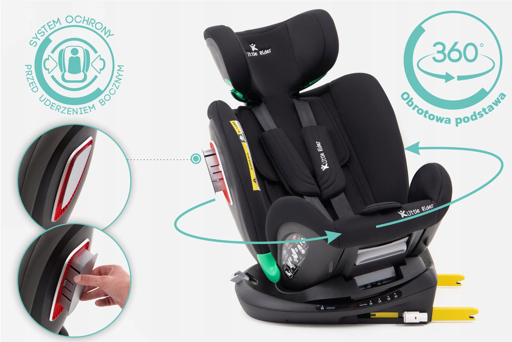 Certified Little Rider Car Seat, в соответствии с последним одобрением I-размера для ребенка высотой 40 до 150 см. Автомобильное сиденье оборудовано роторным сиденьем 360 ° и Top Tether. От 40 до 150 см