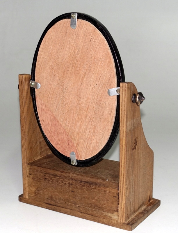 Размеры: высота 28 см, ширина 18,5 см, основная 9,5 см, рама зеркала овальная 20,5 х 14 см