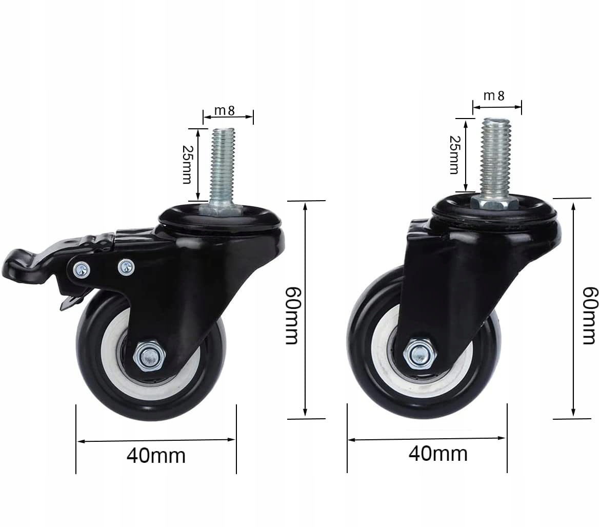ПОВОРОТНОЕ КОЛЕСО С ТОРМОЗОМ НАБОР КОЛЕСА 40ММ 4 ШТ.