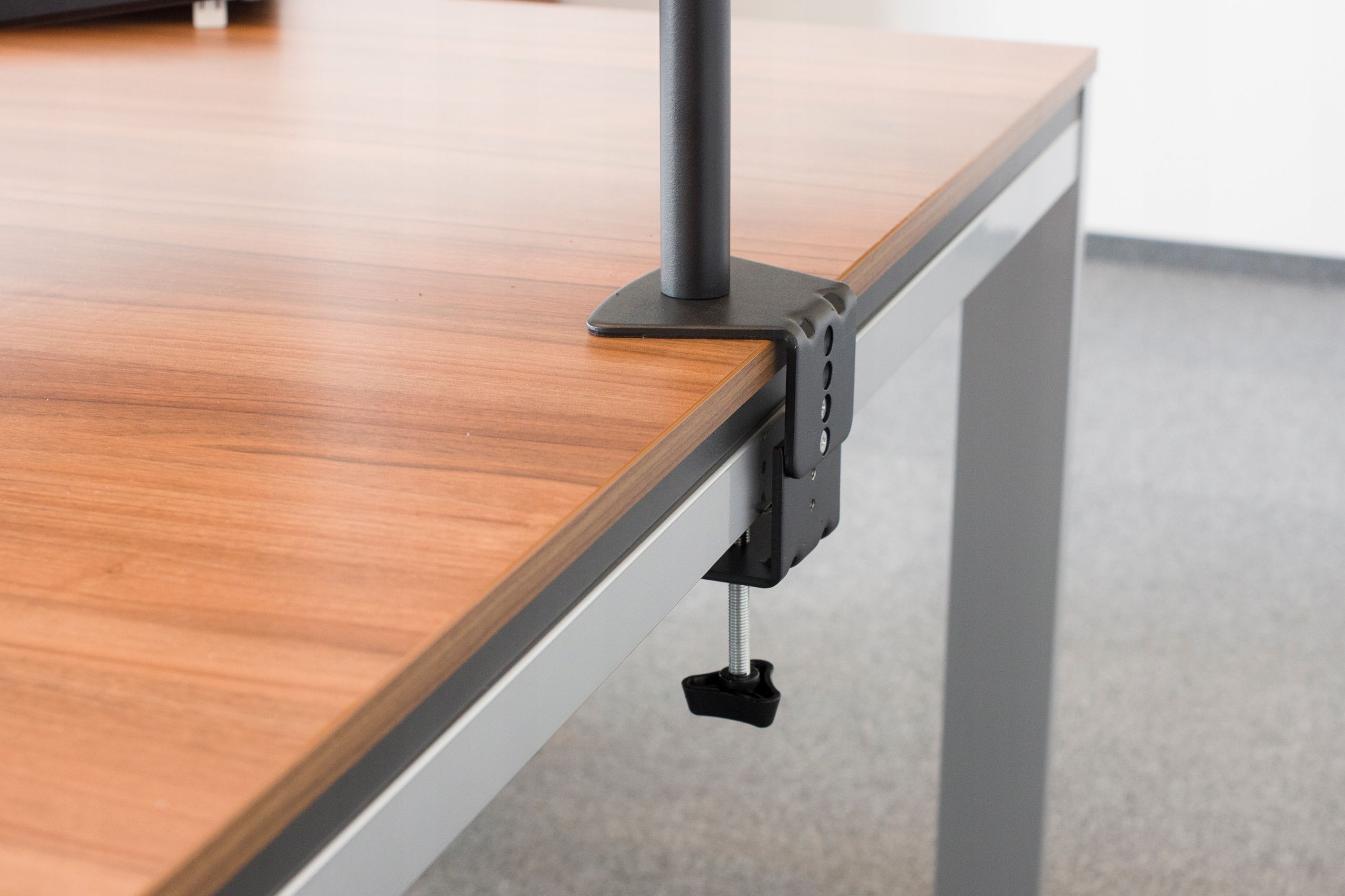 - держатель с необходимыми аксессуарами для установки (включая винты для установки монитора и защитную шайбу для установки в проем столешницы)