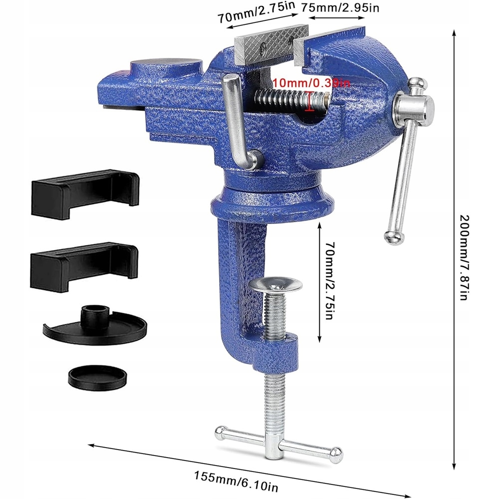 Эти тиски — идеальный выбор для зажима небольших заготовок. Может использоваться в качестве ручки для легких работ, таких как резка труб, сверление, склеивание, столярные работы, обработка металлов, шлифование или строгание, распиловка и т. д.