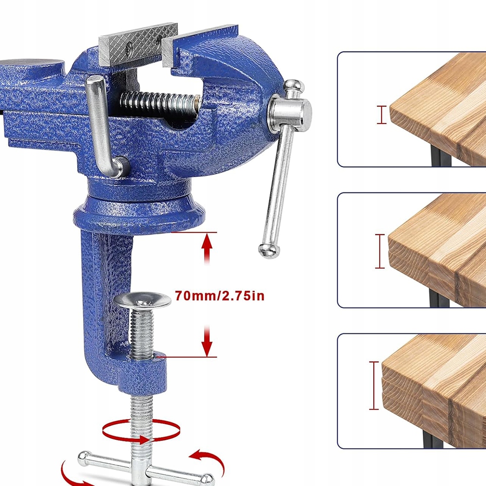 Поворотные тиски диаметром 70 мм с основанием на 360 градусов для столярных работ.