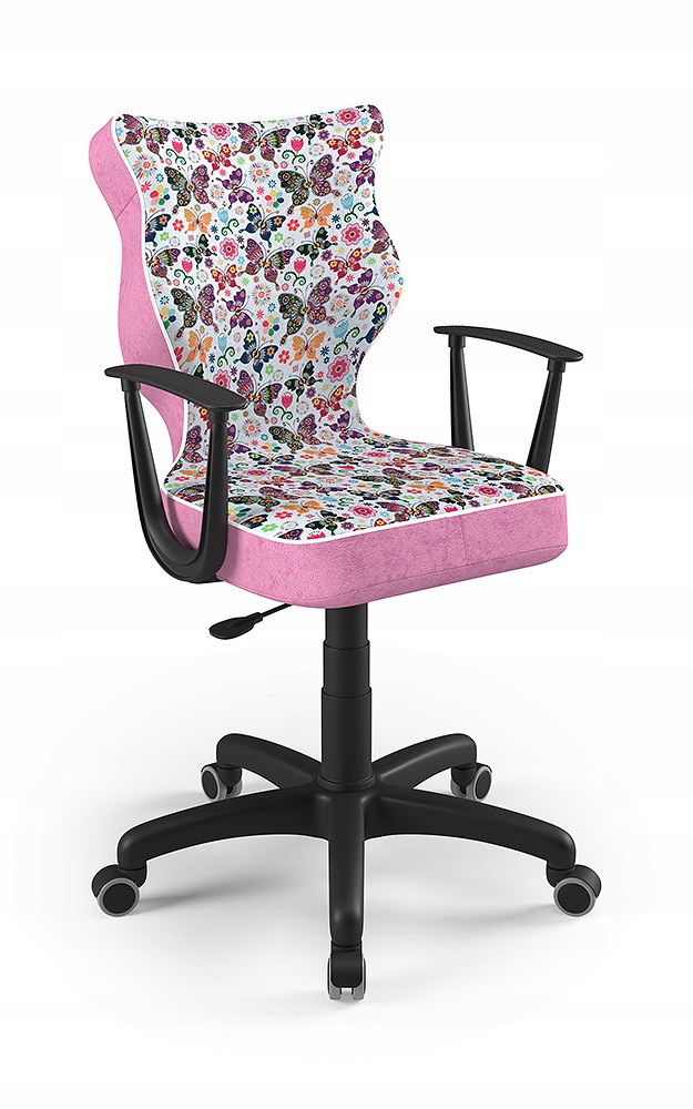 - Эргономичное сиденье и спинка: изготовлены из достаточно эластичного пластика, обтянуты тканью - цвет розовый, отделка: бабочки, белая окантовка > b>