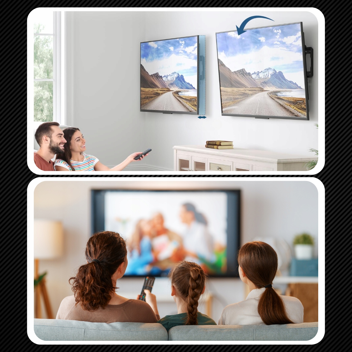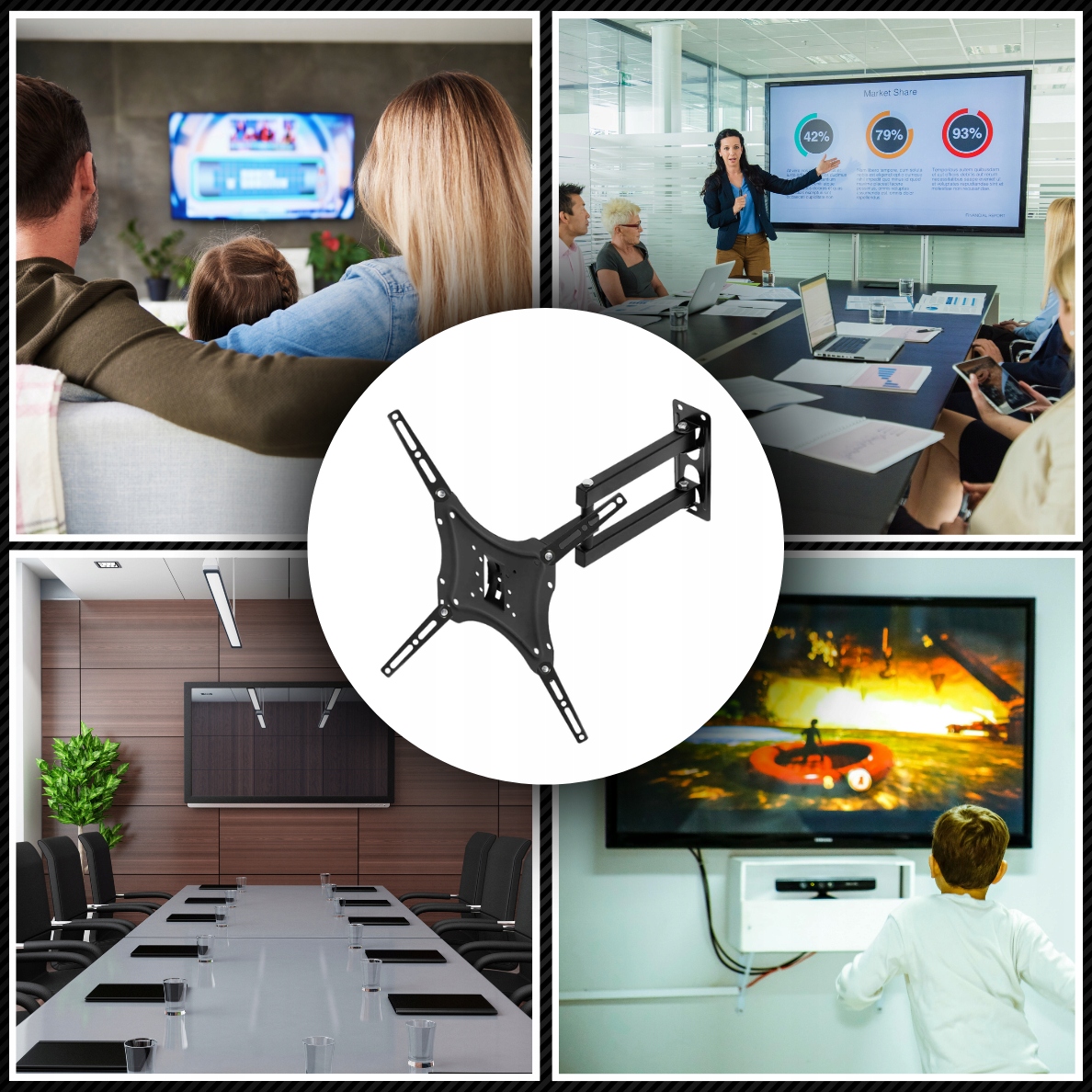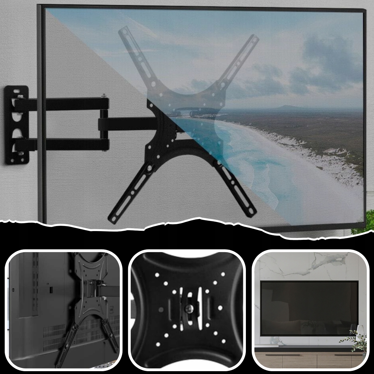 Ручки ротажных стен являются наиболее продвинутой категорией ручек для телевизионных приемников. Хорошо -разработанная ручка VESA для подвешивания ЖК -дисплея или светодиодных мониторов, она должна обеспечить легкую регулировку устройства во всех плоскостях вешалки.