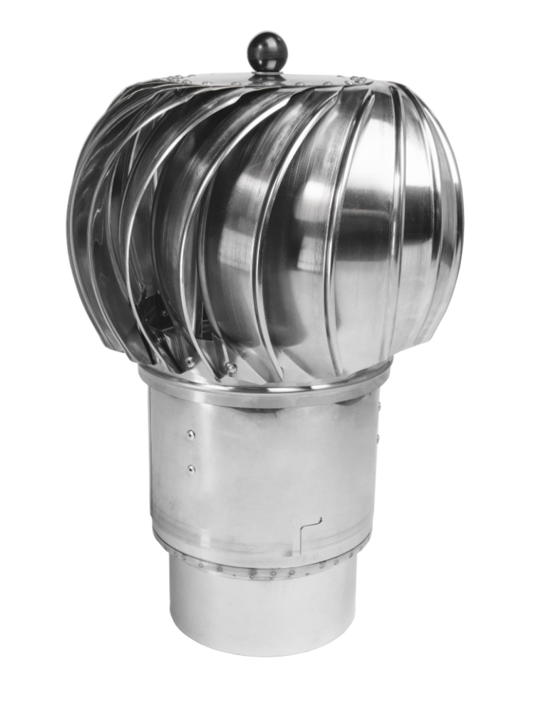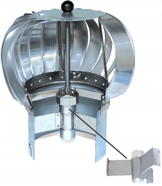 Независимо от направления, силы и типа ветра, турбина капота всегда вращается в одну и ту же сторону. Устанавливается на выходах дымоходов самотечной вентиляции, особенно в одноквартирных и многоквартирных домах.