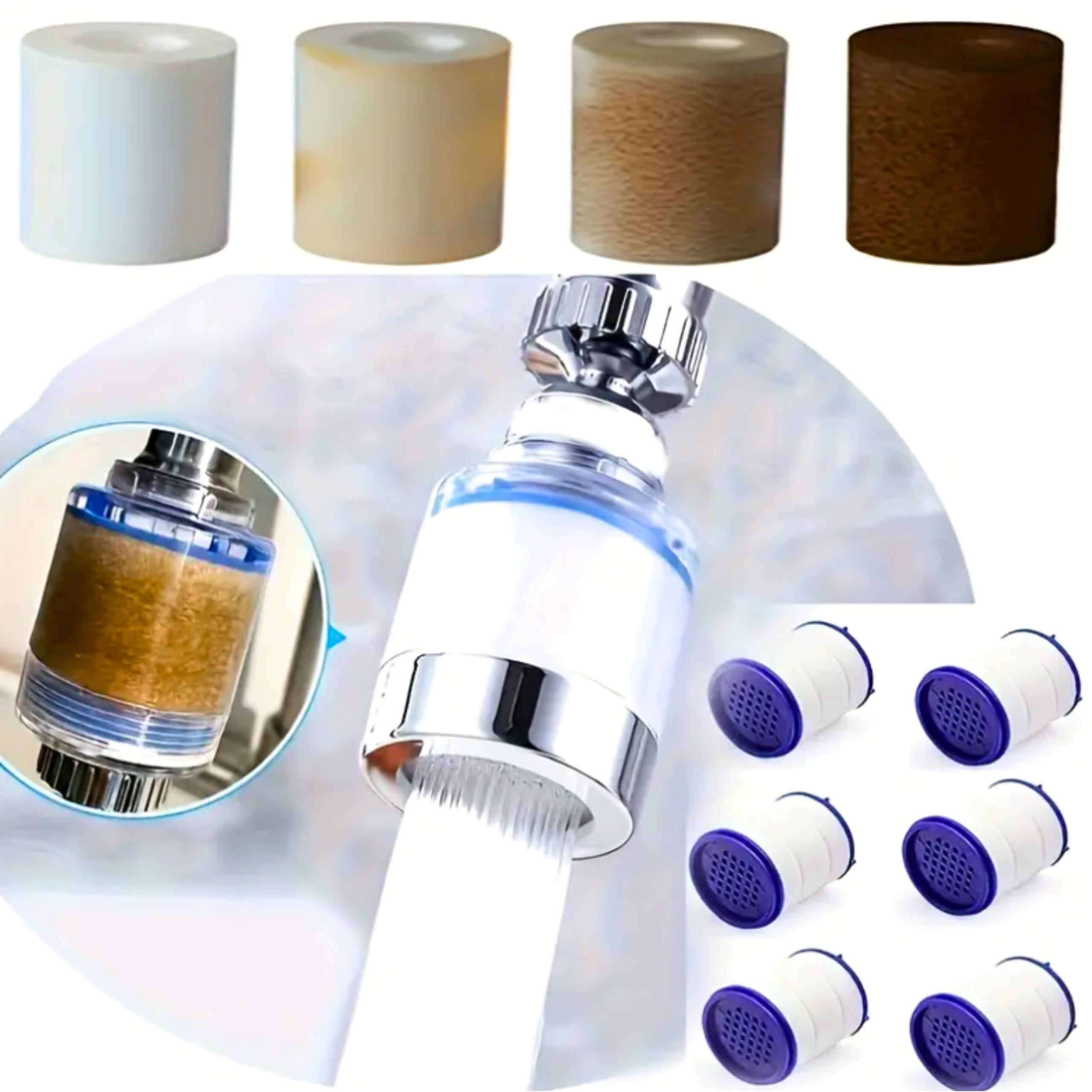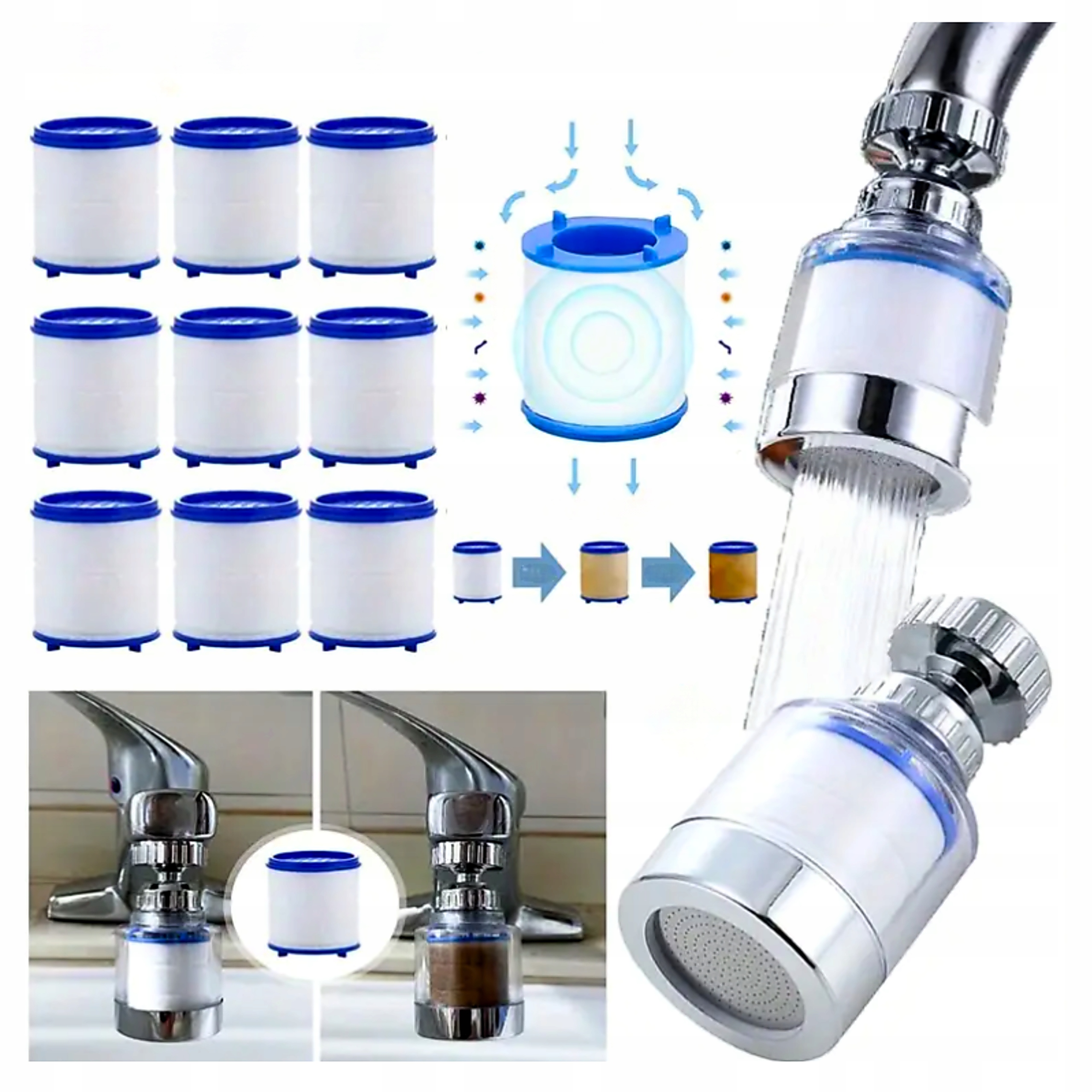 Поворотный фильтр для воды на смесителе удаляет загрязнения и металлы + 10 фильтров