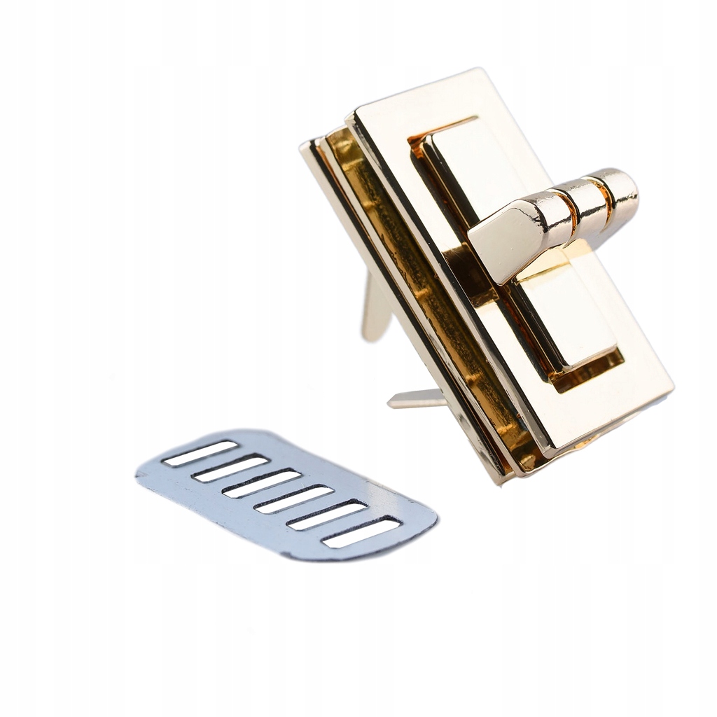 Элегантная классическая поворотная застежка для сумок, рюкзаков , пакетики. Застежка состоит из 3-х элементов. Передняя рамка крепится в клапане сумки в отверстии, соответствующем ее размеру, с помощью небольших шурупов. Вторая часть (с поворотным элементом) крепится на передней части сумки с помощью усов и металлического замка.