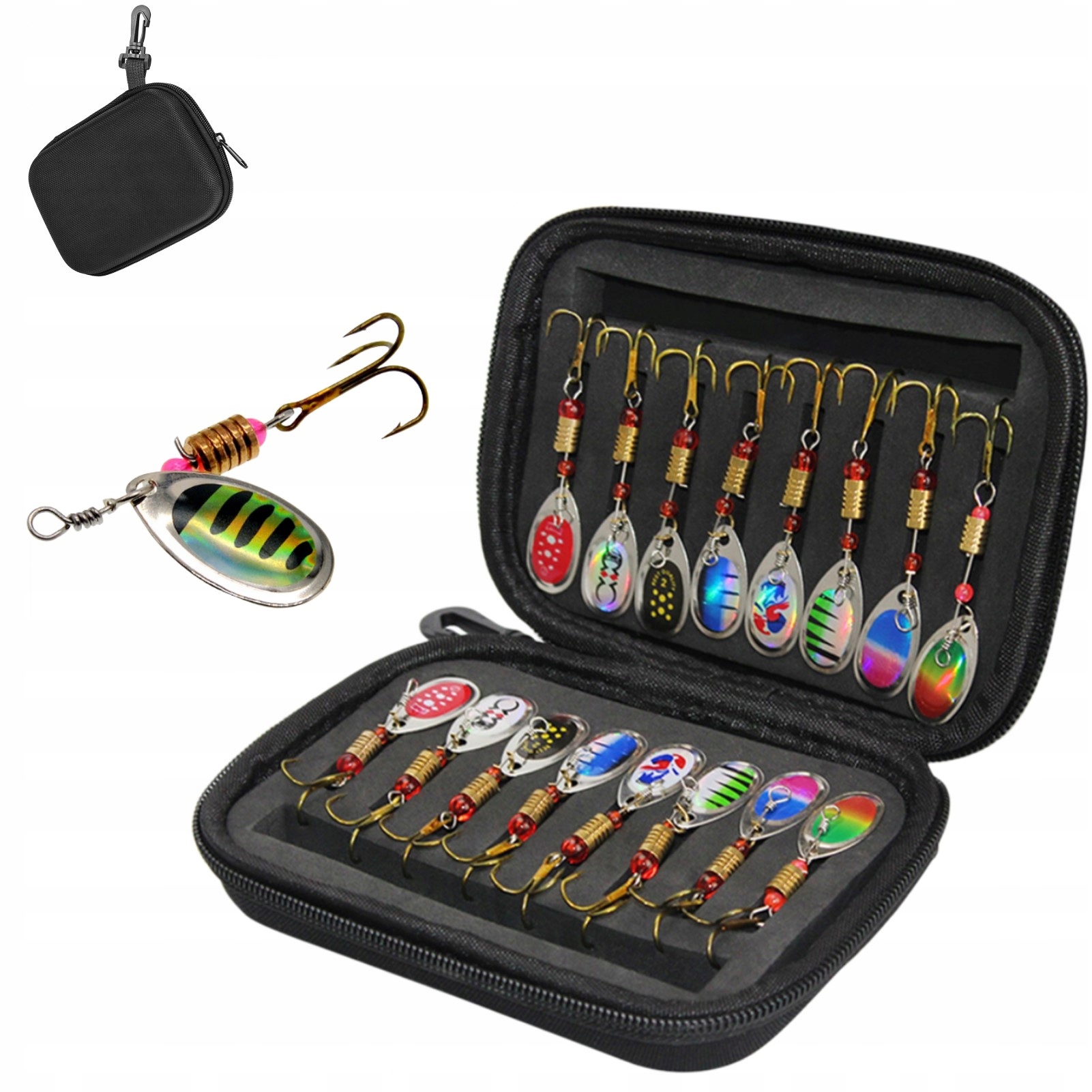 ПОВОРОТНИКИ СПІНІНГОВІ БЛЕШНІ 16ШТ ПРИМАНКИ ЛИСТОВИЙ НАБІР ЧОХОЛ