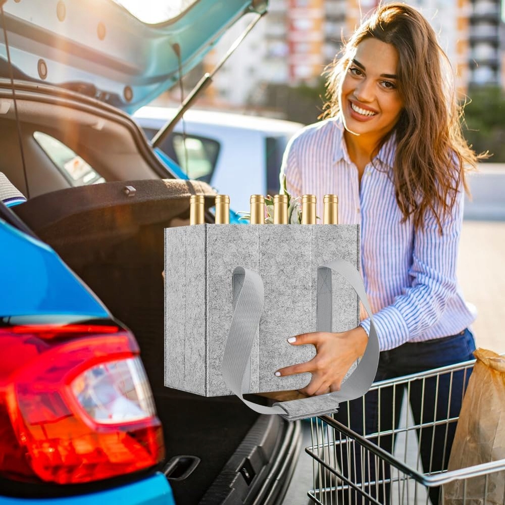 Благодаря двум прочным ремням для переноски и зажиму для ремня на сумке для бутылок покупки удобно лежат в руке, даже если они становятся тяжелее! Сумка изготовлена из прочного, мягкого фетра. Особо прочные швы и устойчивые к разрыву ремни также обеспечивают долговечность изделия.