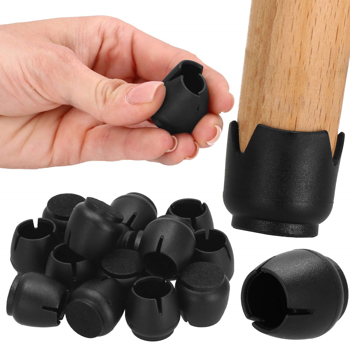Защитные колпачки имеют характерные вырезы, которые не только придают интересный вид, но и выполняют свою функцию в b >прилегает к ноге. Черный цвет прекрасно сочетается с деревом и металлом, поэтому накладки несут не только защитный, но и декоративный характер.
