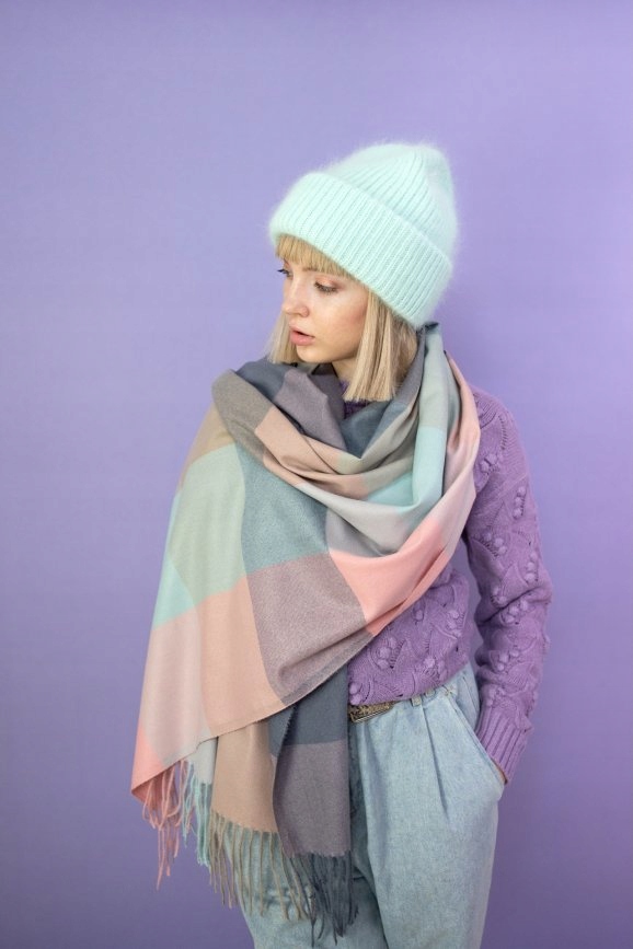 Зимняя шапка-бини Everyday Pastel - плотная, теплая, с лавандовой ангорой.