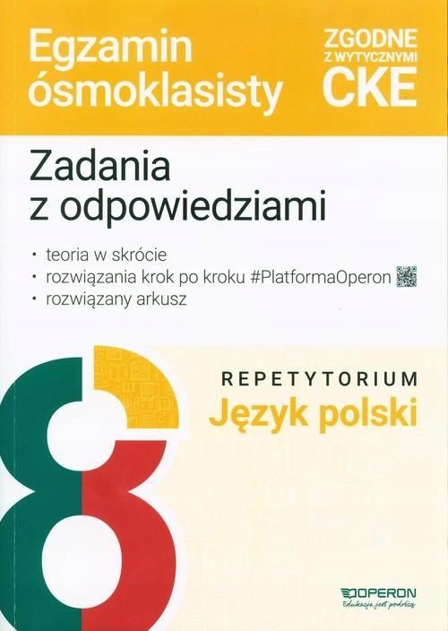Публикация содержит только необходимые практические знания и задачи и листы, полезные для обучения экзамену восьмого класса. Большим преимуществом публикации являются примеры и учебные пособия по написанию эссе и краткое изложение чтения, необходимое во время экзамена. Повторение позволяет учащимся практиковать и повторять все навыки и проблемы, возникающие во время экзамена восьмого класса. Запланировано специально для работы с учителем в школе и индивидуальных повторений дома. Это уникальные, неопубликованные задачи, разработанные строго с руководящими принципами Центральной экзаменационной комиссии. Что вы найдете в публикации повторения. Эссе, чтение, задачи, простыни. Экзамен восьмого класса 2025. Польский язык? Руководство по тому, как справиться с экзаменационным стрессом, Советы по облегчению обучения на экзамене, Обязательно, как правильно написать все формы выражения, требуемые во время экзамена, Задачи, обучающие способность создавать эссе шаг за шагом вместе с необходимыми фразами, характерными для данной формы выражения, Типы задач, которые будут появляться во время восьмого экзамена в системе в соответствии с основной учебной программой, Пробной лист, разработанный центральной экзаменационной платой шаг за шагом