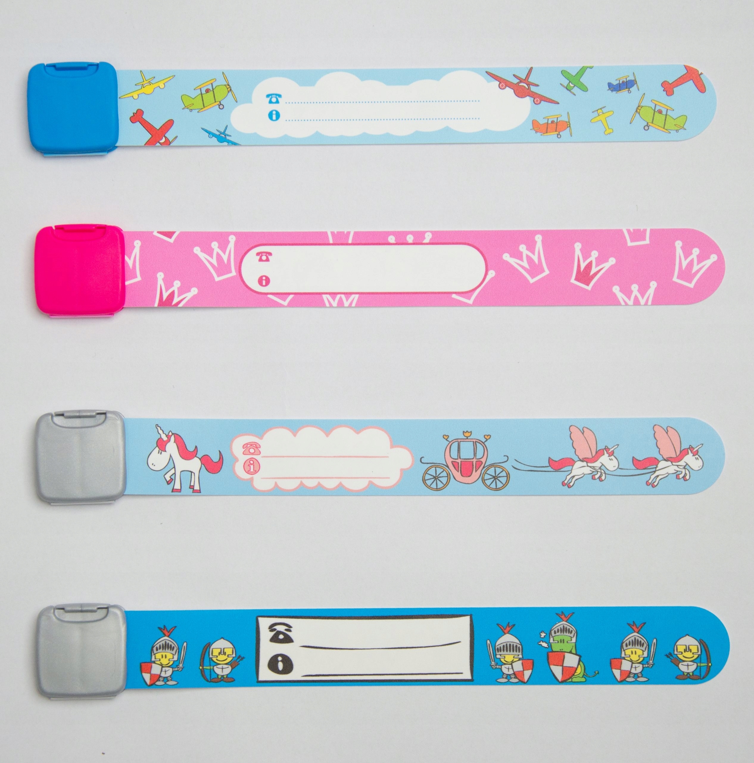 Браслет сконструирован таким образом, что малыш не может снять его самостоятельно. Однако это не мешает взрослым свободно снимать его и надевать на руку ребенка. Информацию на браслете можно написать маркером или обычной ручкой. После высыхания надпись очень прочная и водостойкая.