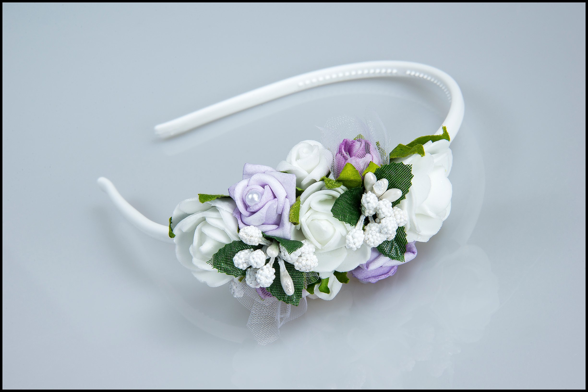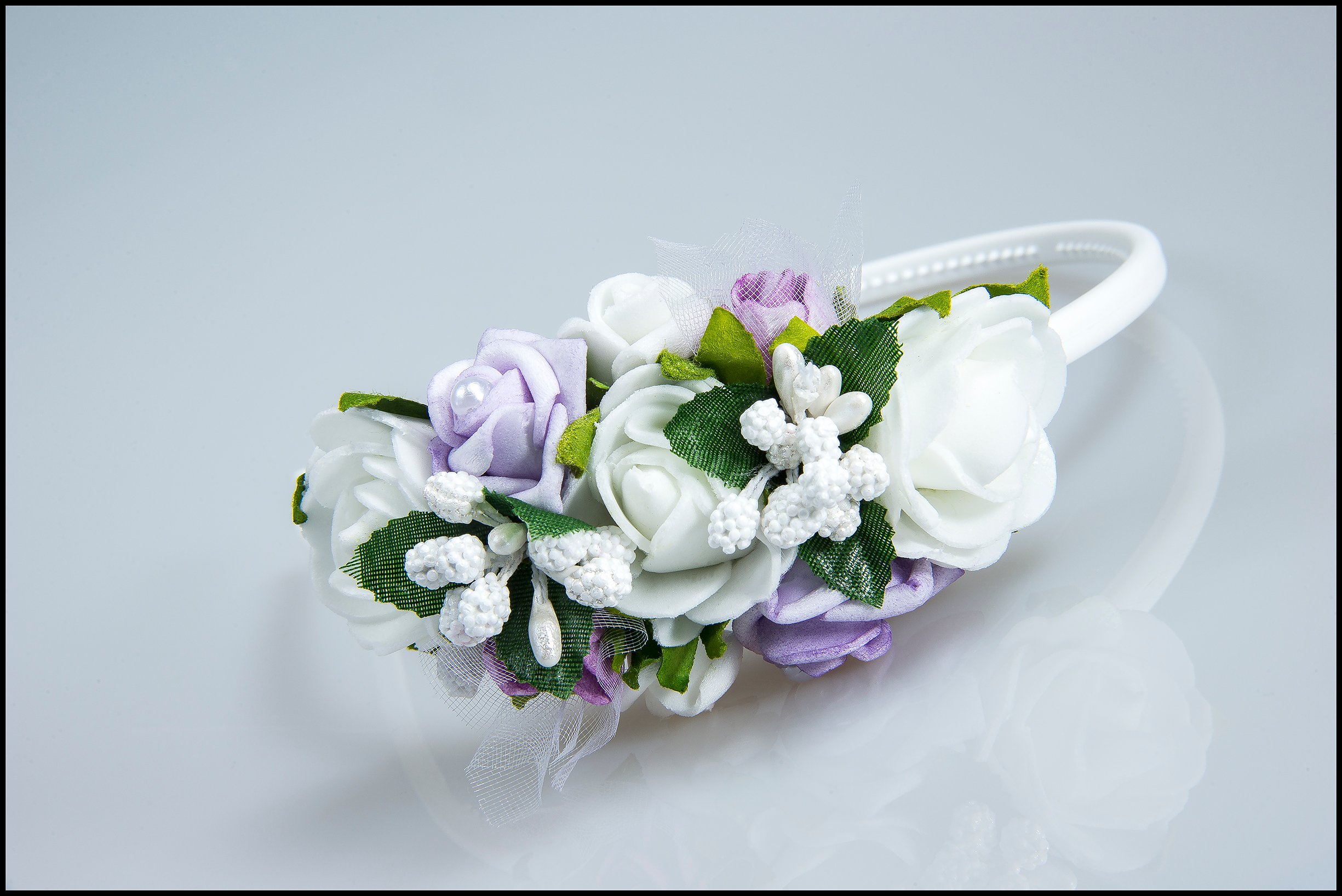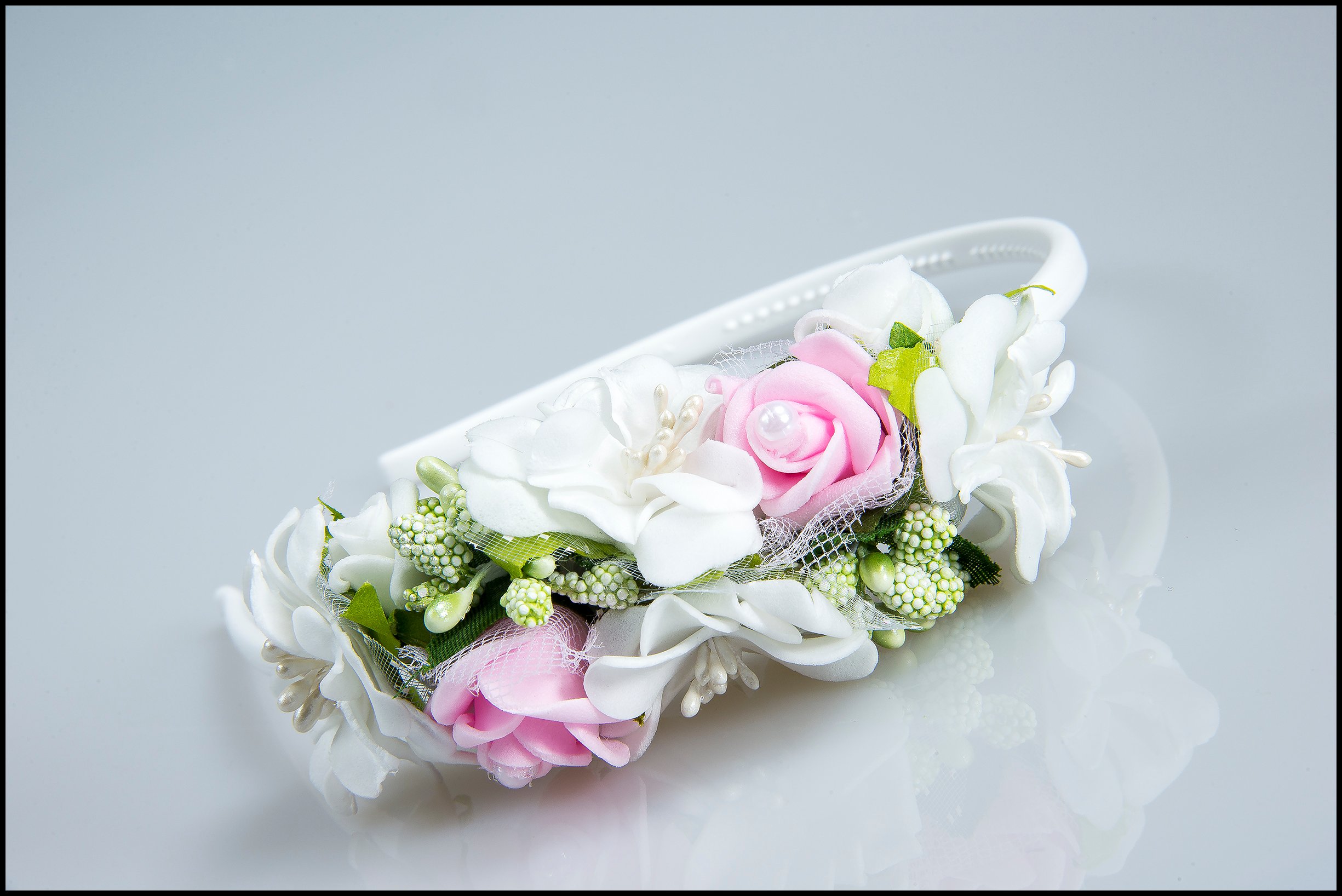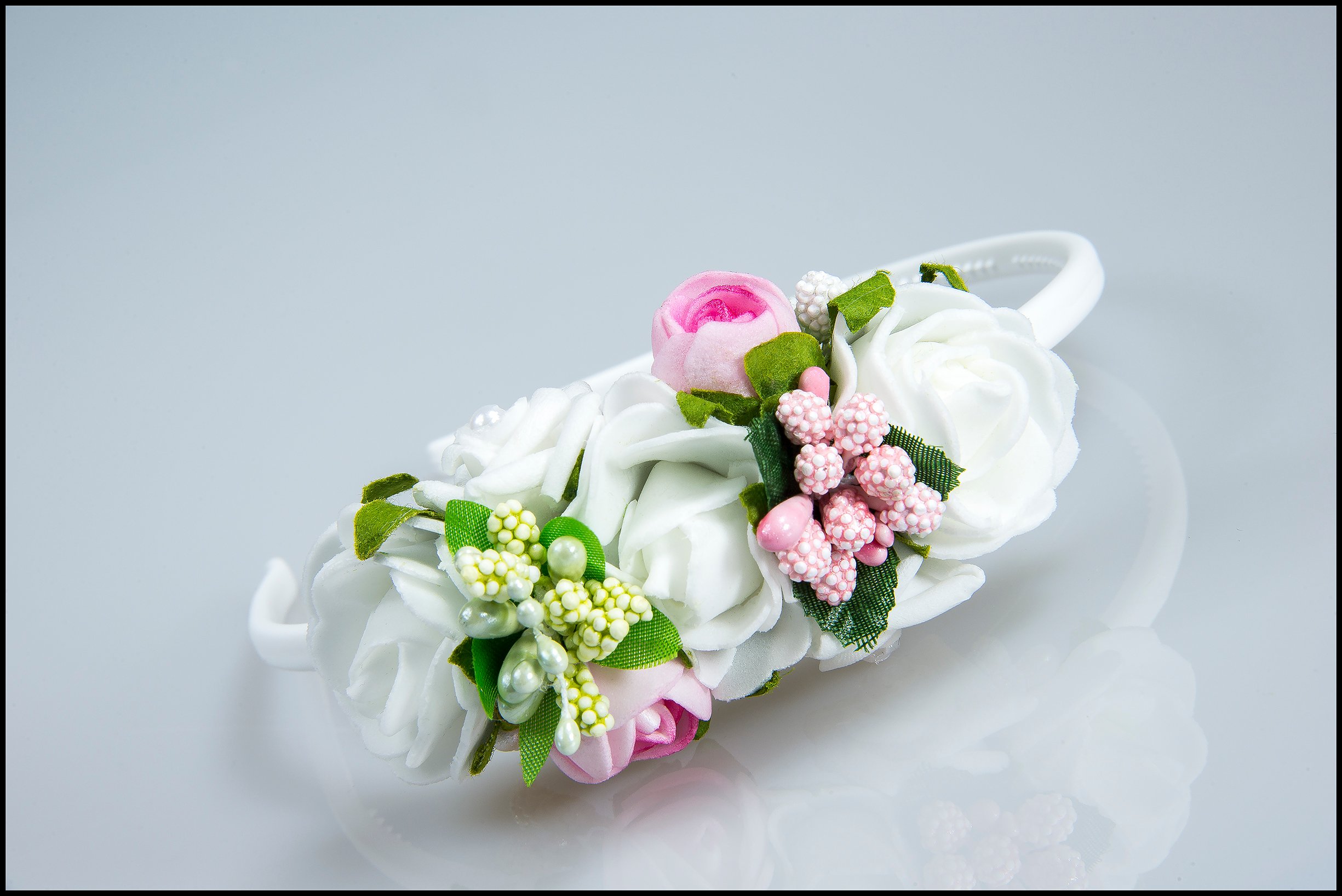 Впечатляющий ободок для причастия из высококачественных роз из пенопласта. Розы из пенопласта выглядят очень естественно, а жемчуг придает украшению элегантности. Идеально подходит для Белой недели или костюма-венка.