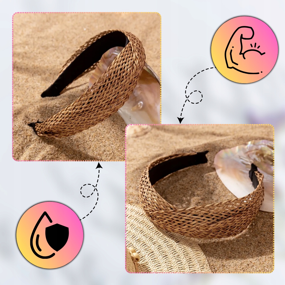 Повязка для волос плетеная из ротанга, широкая, ажурная, натуральная, летняя