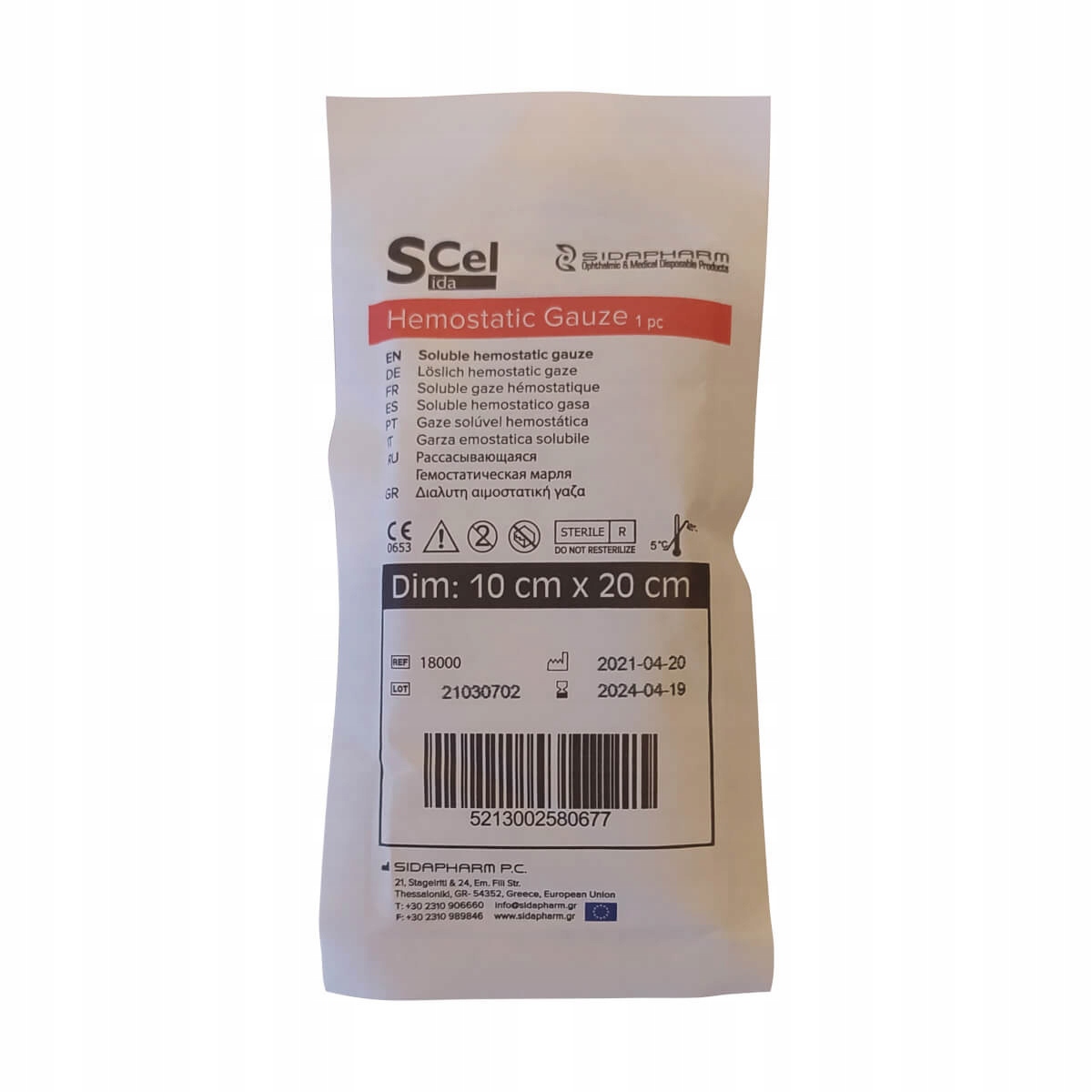 Гемостатическая повязка в виде марлевого компресса, пропитанного активным веществом. Предназначен для перевязки сильно кровоточащих ран, вызывает свертывание крови, останавливая кровотечение. SIDA CEL создает желатиновую массу, заполняет пустое пространство раны и герметизирует концы капилляров. Эффективное действие кровоостанавливающей повязки подтверждено клиническими испытаниями. Применение: - перевязка ран - остановка кровотечений - кровоостанавливающая повязка - оснащение аптечки - оснащение мешка R1 - дезинфекция ран Особенности: - марлевый компресс, пропитанный активным веществом - продукт безопасен для здоровья - нейтральный pH 7,0 - исключает ощущение жжения и раздражения кожи - обладает бактериостатическими свойствами - не содержит латекса - стерильный продукт Технические данные: - размеры компресса 10 х 20 см