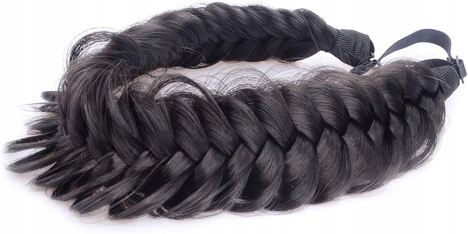 BOBIYA Messy Wide 2 пряди синтетические волосы, плетение на голову, натуральная черная коса, повязка на голову, плетение на голову для женщин (натуральный черный)