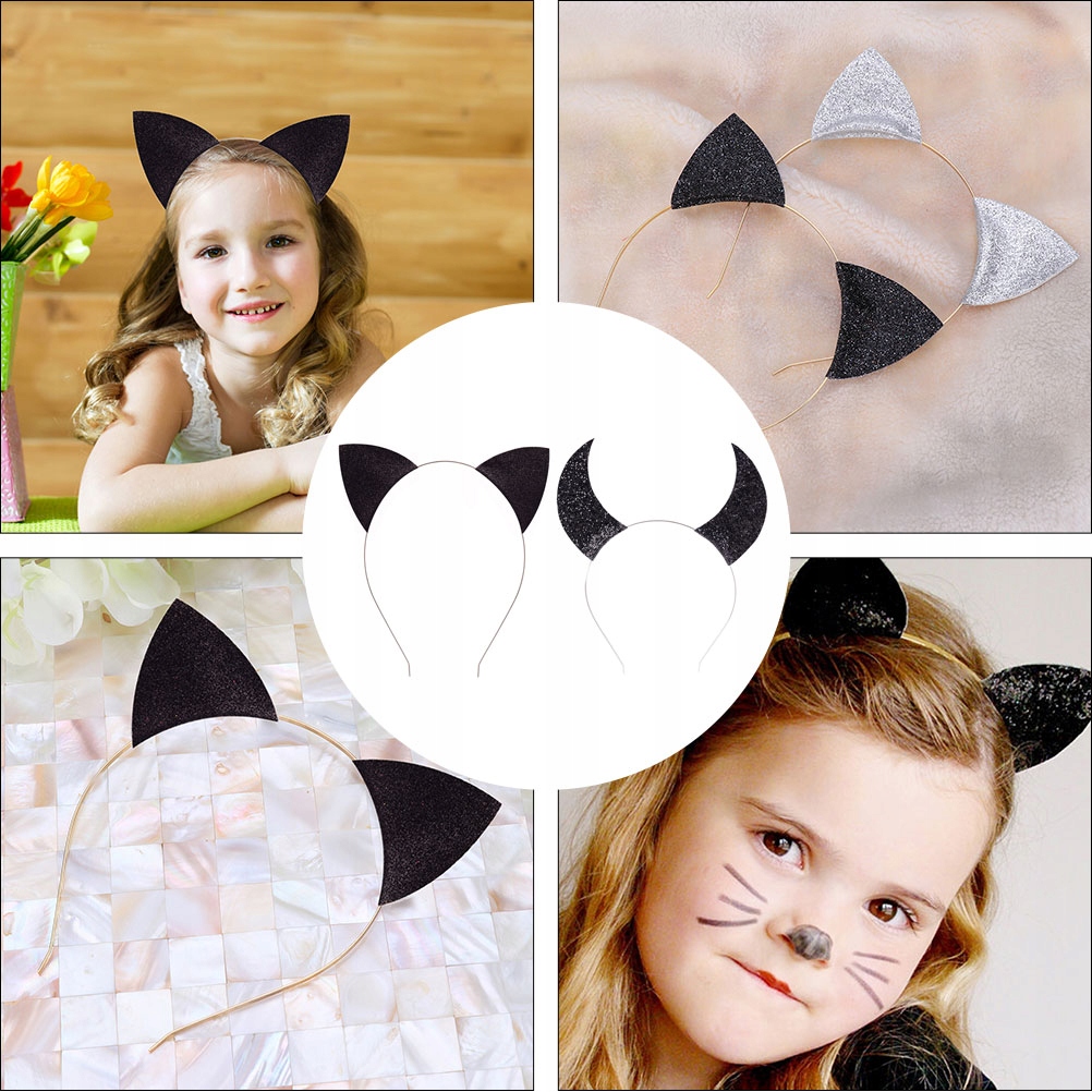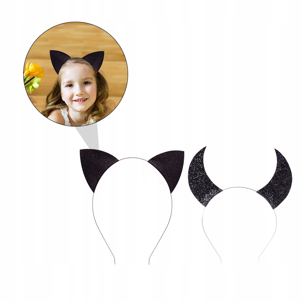Пов'язка на Хеллоуїн Блискучі котячі вушка Роги 2 шт