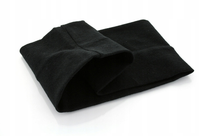 Материал резинки для волос из трикотажной ткани черного цвета.