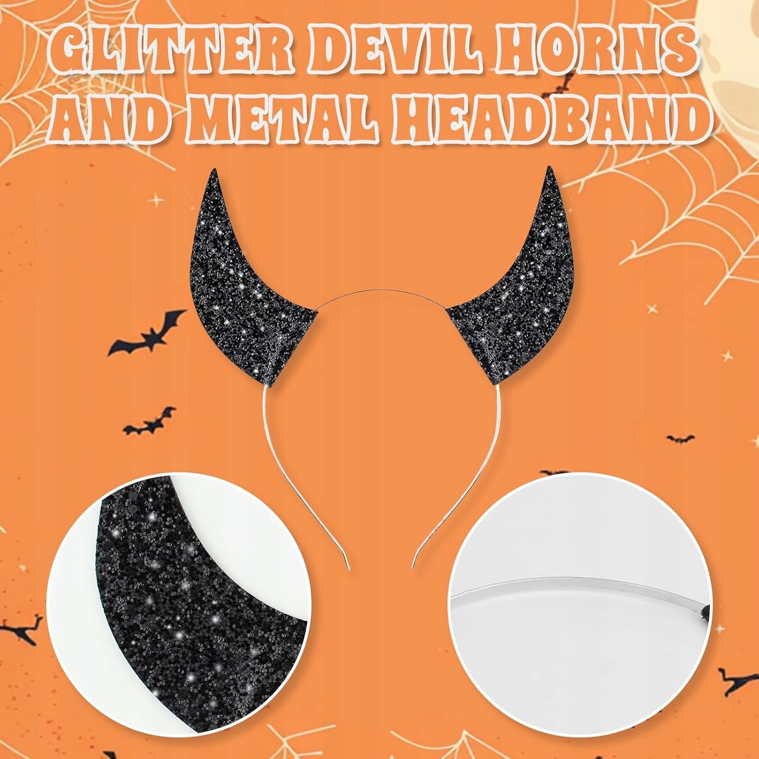 ПОВЯЗКА НА ГОЛОВУ С РОГАМИ ДЬЯВОЛА, ЧЕРНАЯ С БЛЕСКАМИ, УНИСЕКС, ХЭЛЛОУИН, 3 ШТ.