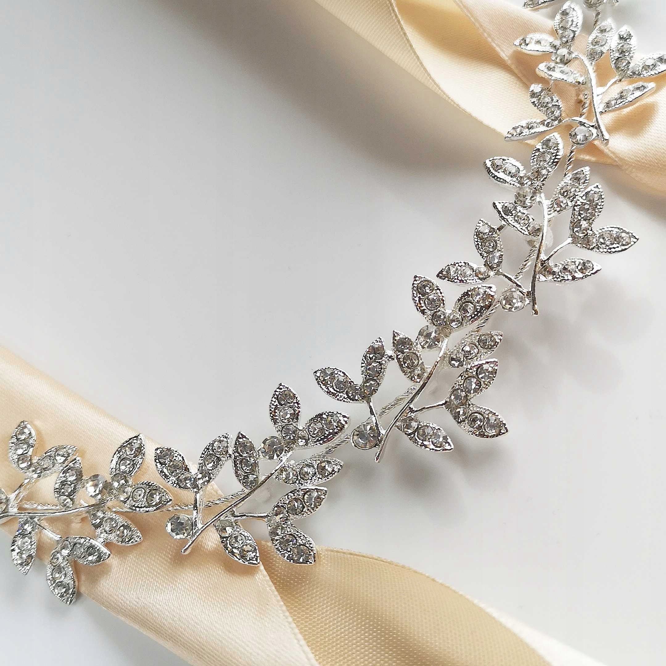 Пов'язка срібляста зі стразами FLOWERS LEAVES glam