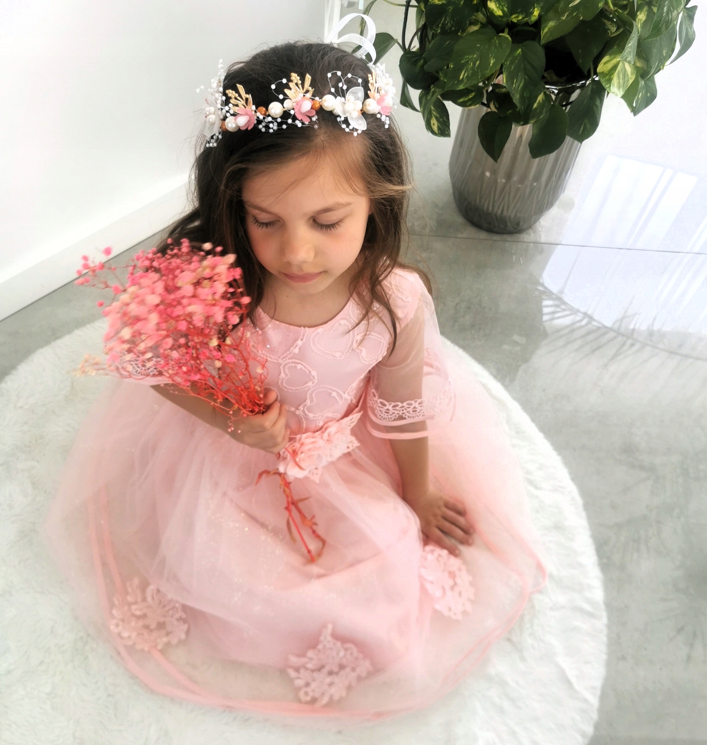 Пов'язка Вінок для причастя, віночки для причастя, рожеве золото, квіти на голові