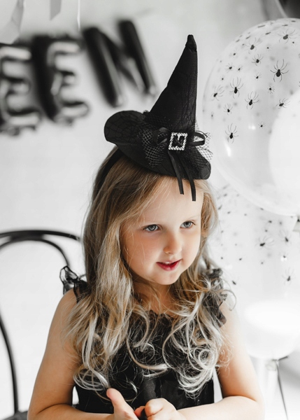 Небольшая черная шляпа, закрепленная на пластиковой обтянутой тканью повязке, станет отличным дополнением к костюму ведьмы! Украшенный нежной сеткой и серебряной пряжкой, он прекрасно дополнит костюмы на Хэллоуин и День Святого Андрея!