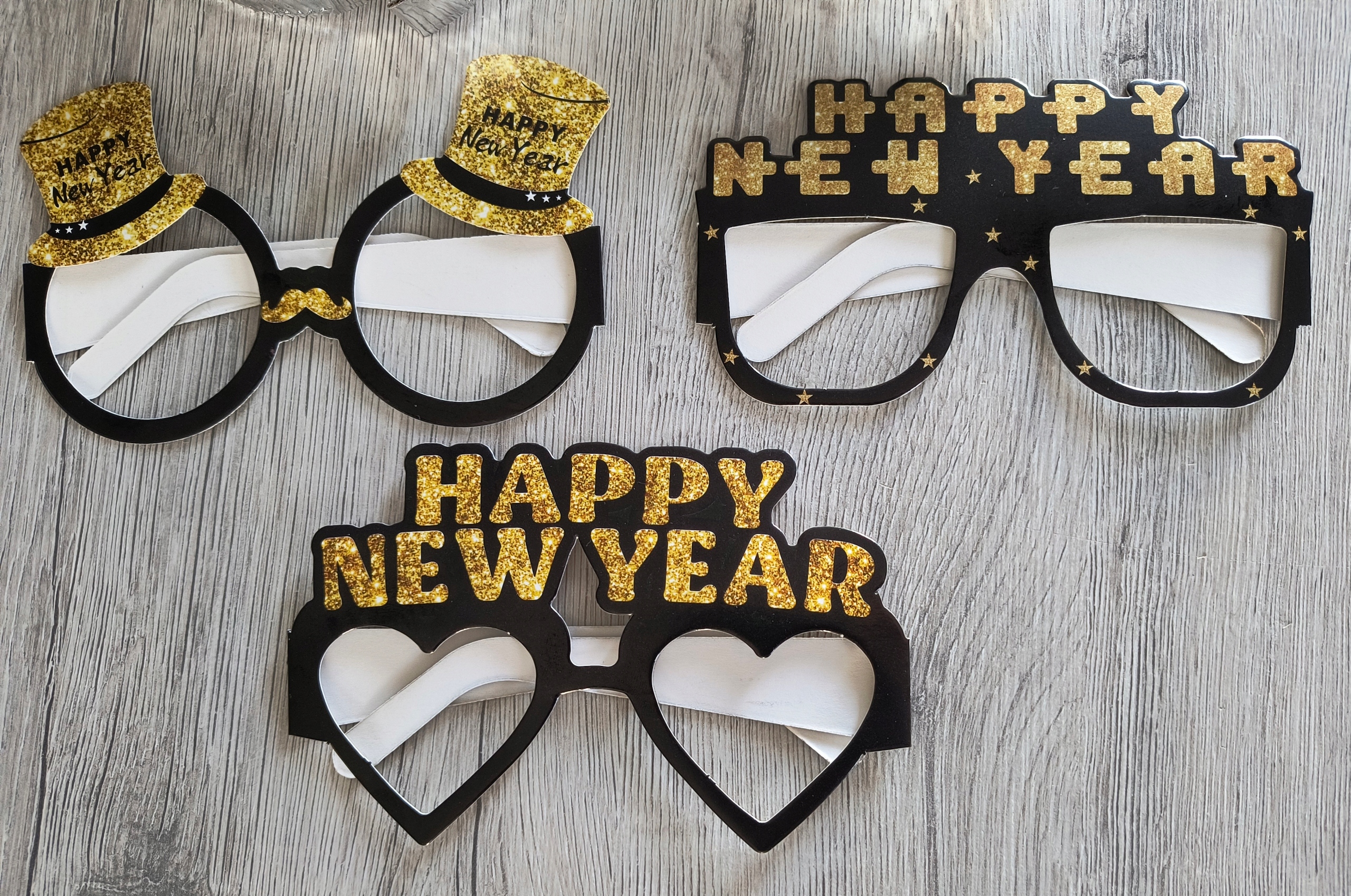 Создайте незабываемую атмосферу в новогоднюю ночь с набором стильных повязок и очков! В комплект входят 6 красивых повязок с надписью "С Новым годом" в золотом, черном и серебряном цвете и 3 бумажных стакана.