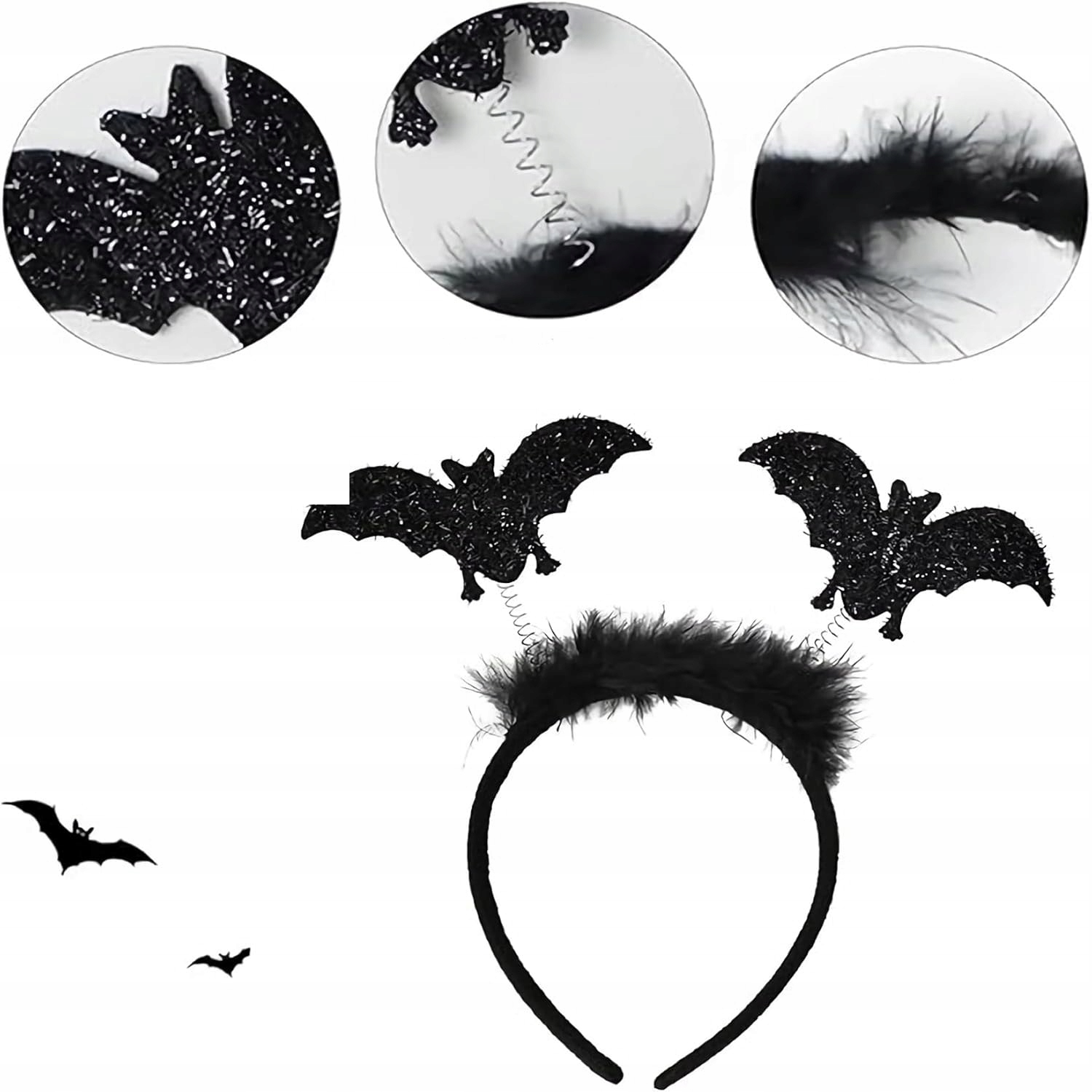 �️🕷️Повязка для волос «Дьявол/черный ангел»: блестящая и пушистая, провода, соединяющие летучих мышей с повязками для волос, гибкие. Две прыгающие, две прыгающие, качающиеся летучие мыши придадут вашему костюму милый и забавный вид. Идеальный аксессуар для Хэллоуина