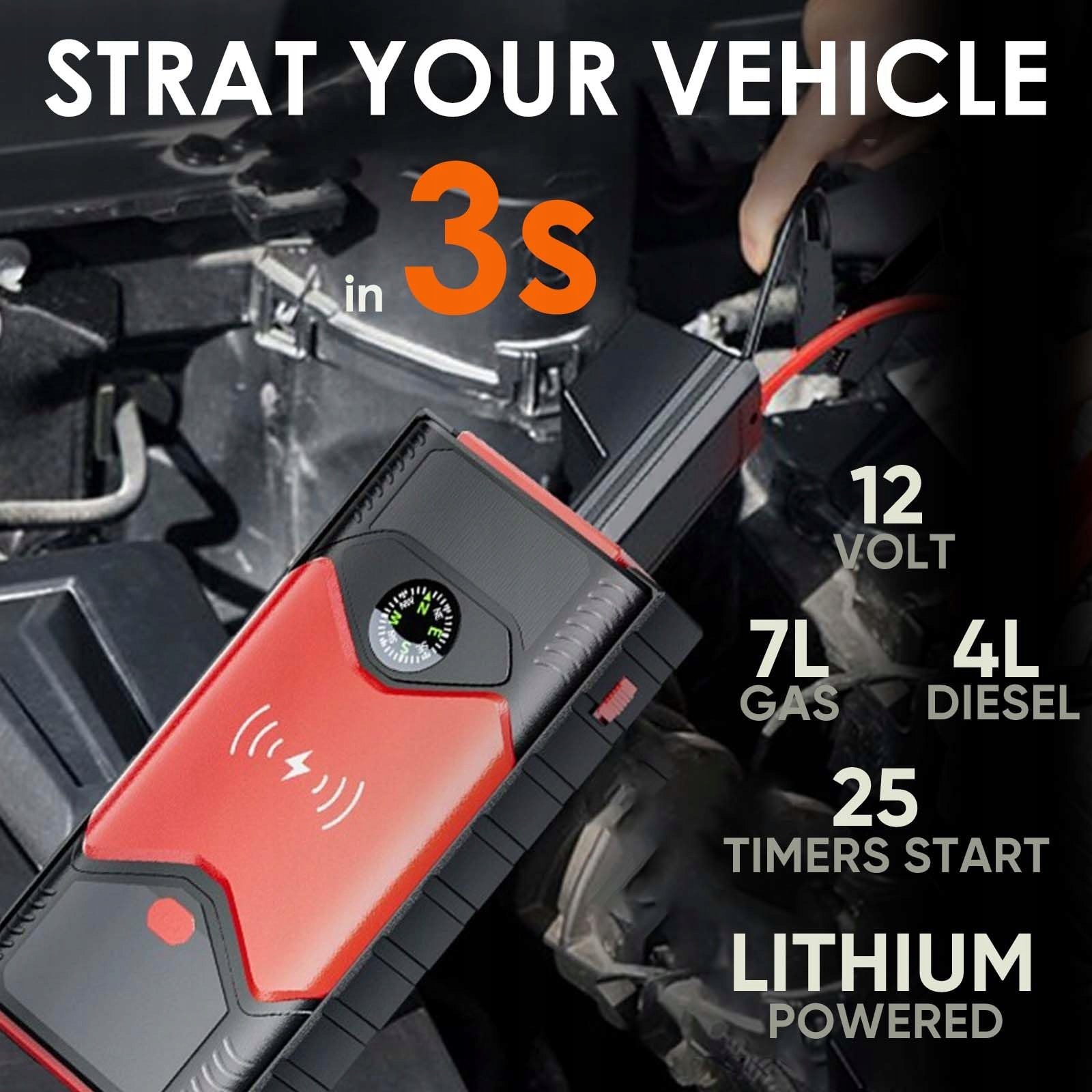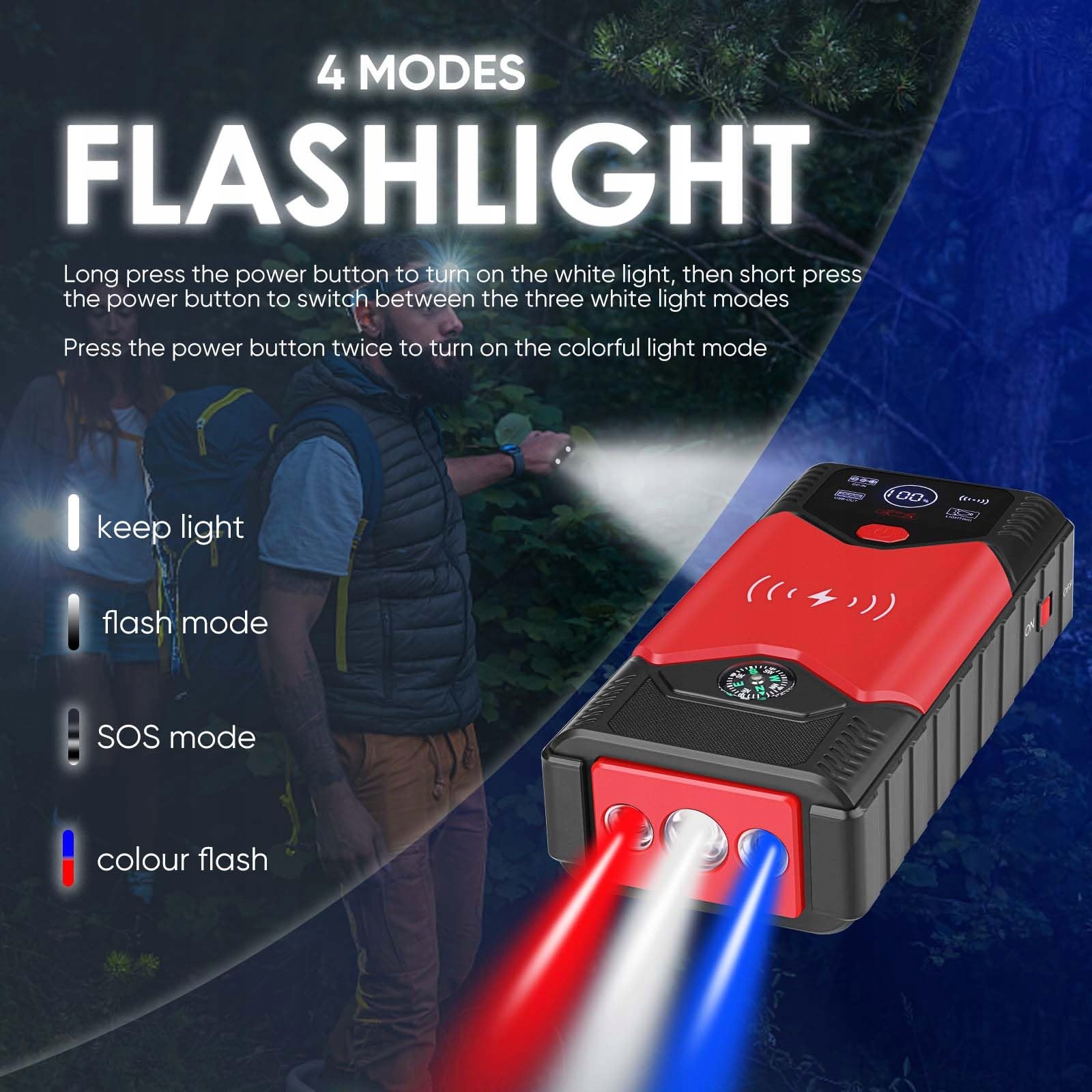 - Jump Starter имеет функцию беспроводной зарядки, которая может освободить ваши электронные устройства от оков USB-кабеля (умные устройства должны поддерживать беспроводную зарядку)
