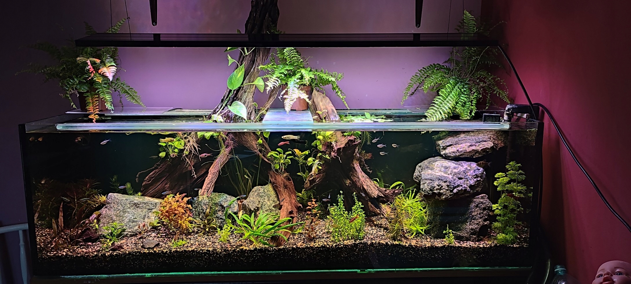 Лампа PWL-R150-плюс является нашим новым предложением для полного освещения для растения и общего аквариума. Длина лампы 150 см. Использование светодиодных диодов в соответствующих 3200 К, 4500K, 6500 К, красный, красный глубокий, синий, королевский синий и зеленый и зеленый позволил создать световой световой световой световой лампой, идеально подходящего для роста растений. Вы также можете запрограммировать различные режимы освещения: рассвет, восход солнца, Zenit, Sunset и Dusk. Преимущество этого режима - плавно осветление и погашение лампы, благодаря которой жители аквариума не подчеркиваются внезапными вспышками освещения. Целое было помещено в элегантный алюминиевый и плексигласный корпус. Светопроводные линзы также использовались в лампе. Мы уделяем большое внимание качеству изготовления, благодаря тому, что наши лампы добавляют престиж в каждый бак.