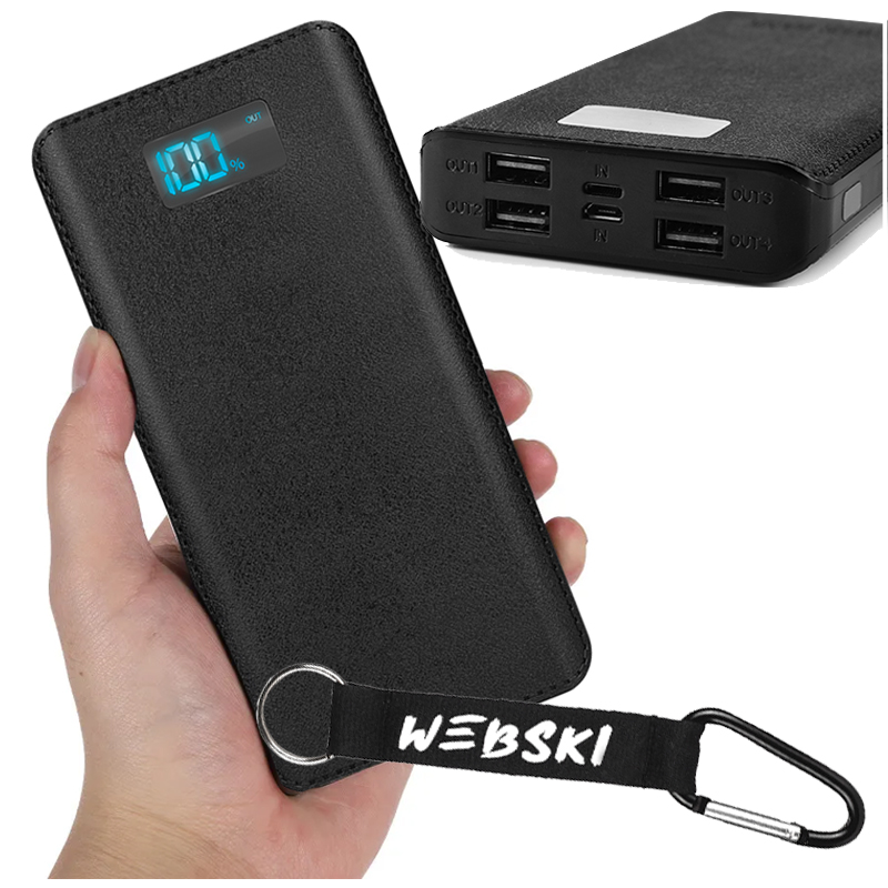 ⚡ Power Bank емкостью 20 000 мАч в элегантном корпусе, имитирующем кожу, и дисплеем с 4 USB-разъемами, позволяющими одновременно заряжать несколько устройств!