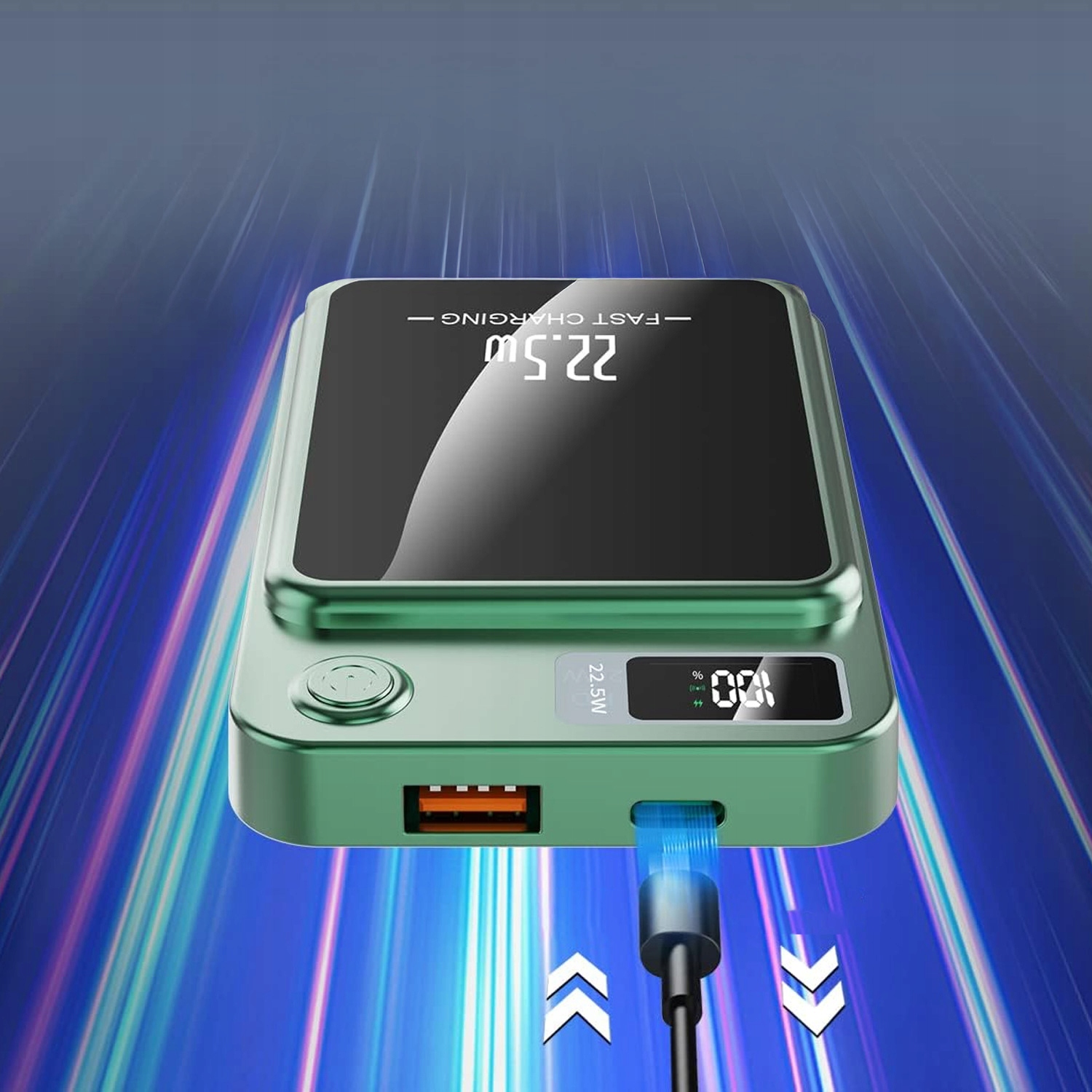 USB-порт с мощностью 22,5 Вт-идеальной для наушников, планшетов и других гаджетов. Просто поместите телефон горизонтально на Powerbank. Устройства Chase 3 одновременно: 1 Беспроводной + 2 кабеля! 📱+⌚+🎧