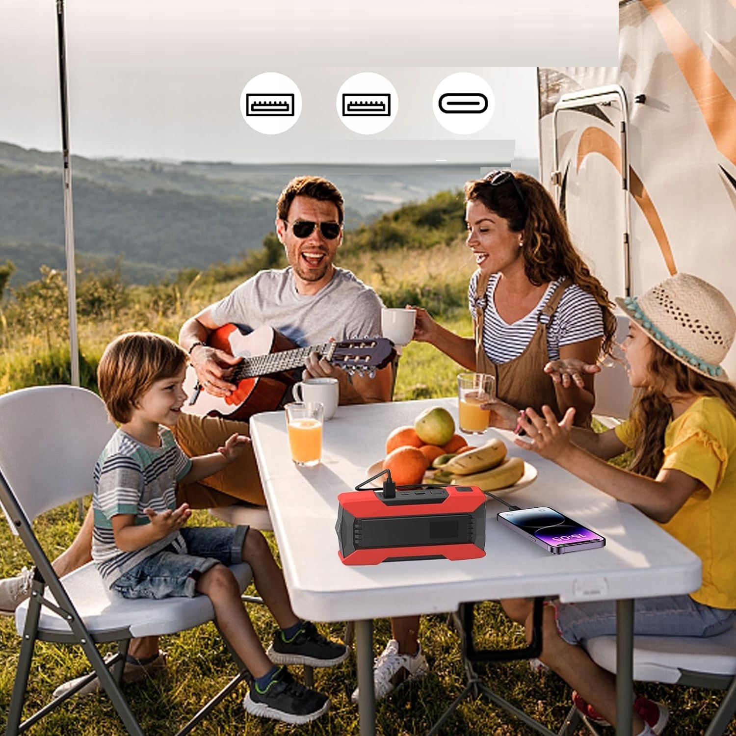 Питание оснащено множеством интерфейсов зарядки для удовлетворения потребностей различных зарядных источников питания. Одна времени зарядка аварийного источника питания багажника длится около 5 часов; Количество текущих циклов почти 2000 раз.